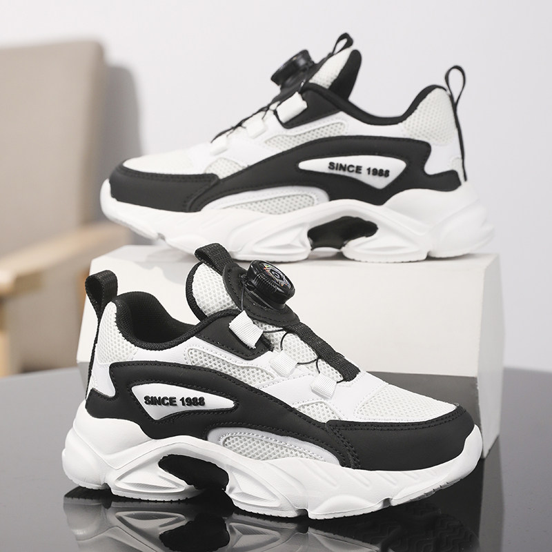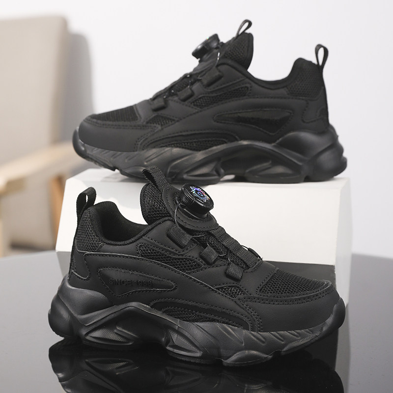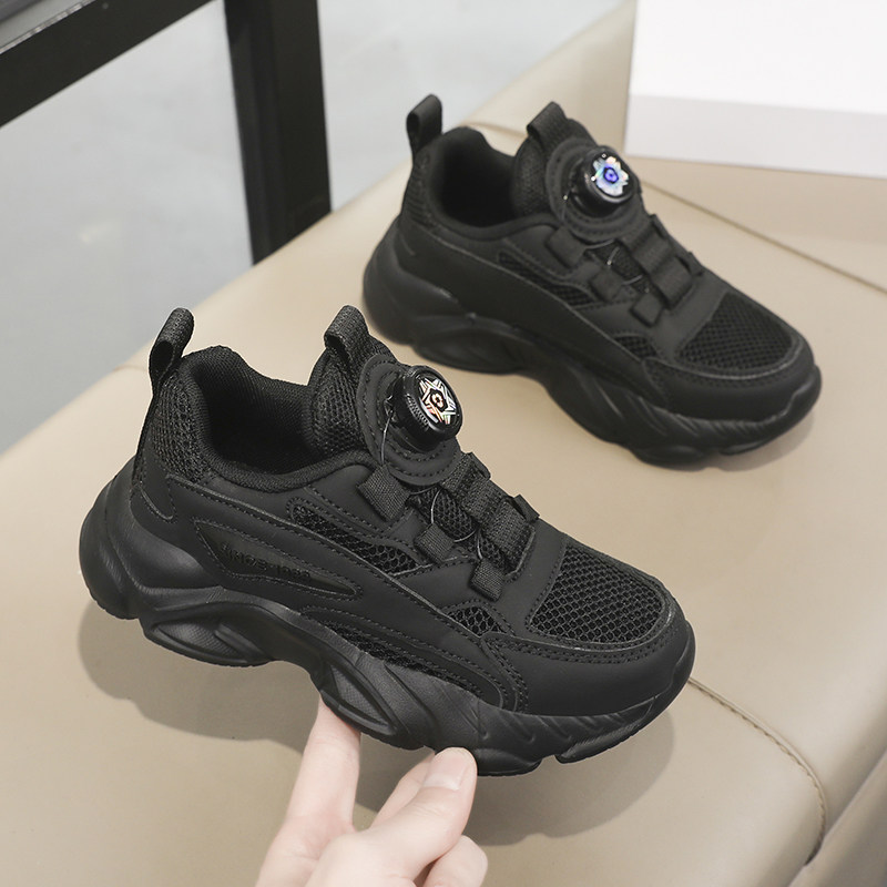 ABCkings儿童黑色运动鞋春秋款男童鞋子女童中大童网面透气跑步鞋