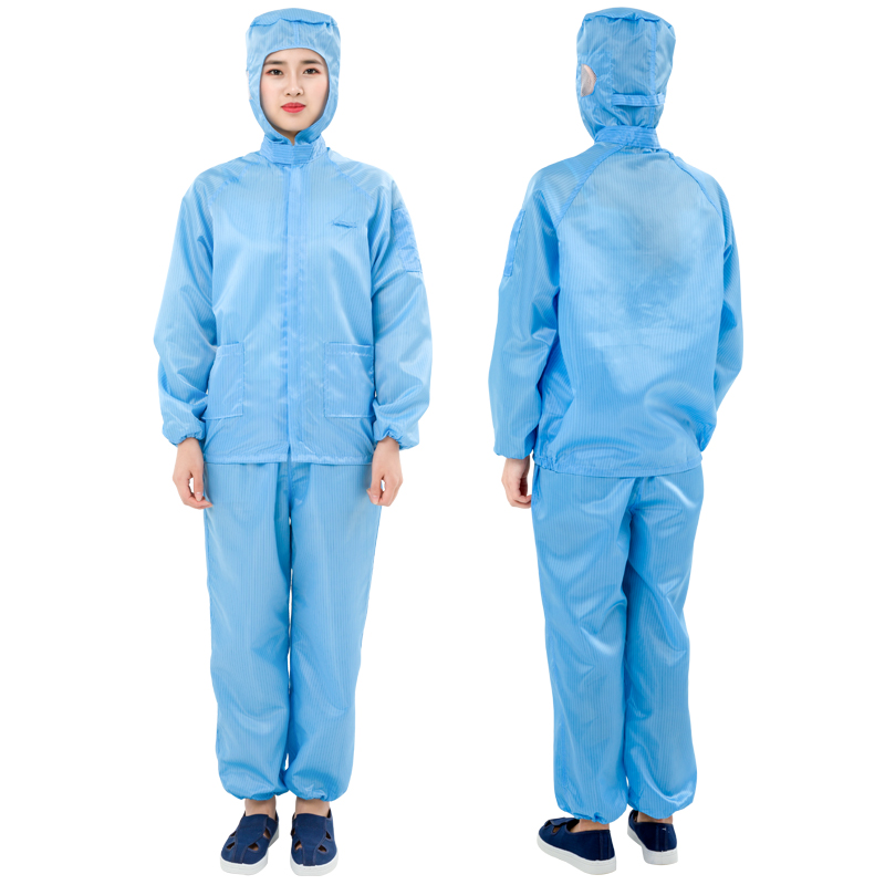 无尘服分体连帽上衣短款男女工作衣防尘静电服蓝灰养殖洁净服蓝白