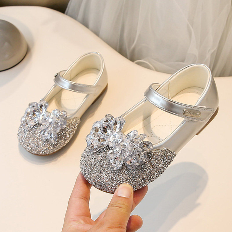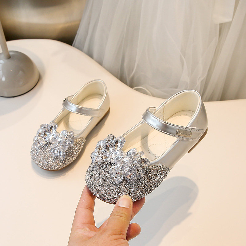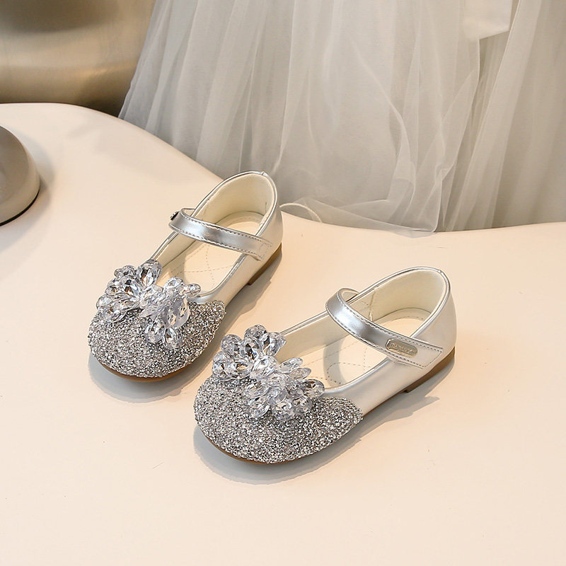 真皮女童小皮鞋2025春秋新款儿童公主鞋软底女孩水晶鞋洋气单鞋子