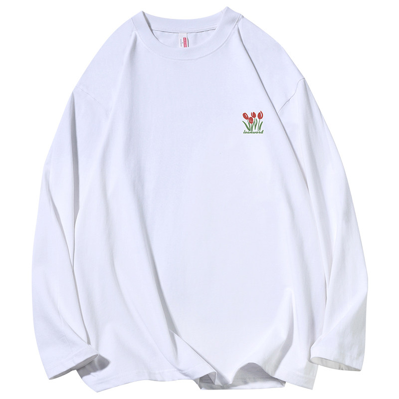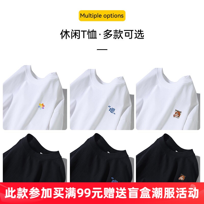 220G重磅纯棉打底衫男青少年体恤衫上衣宽松大码运动白色长袖t恤
