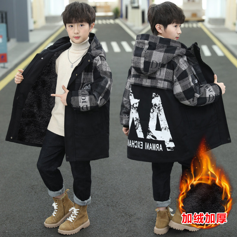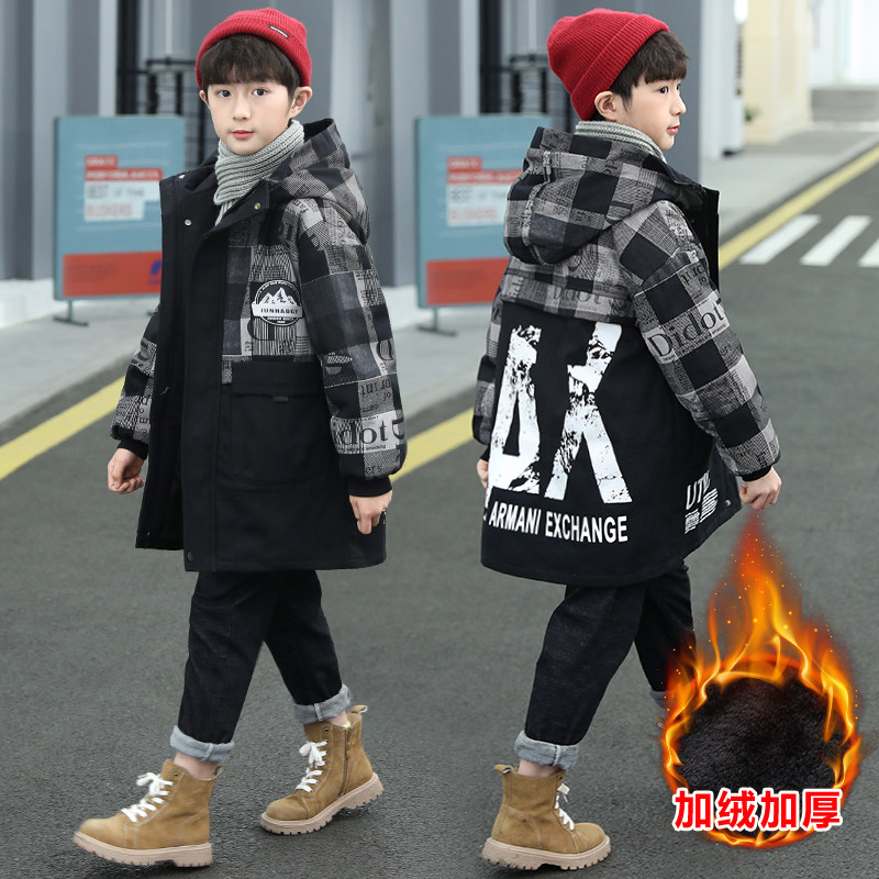 男童加绒加厚外套秋冬款酷帅中大童男孩冬装棉服儿童装冬季派克服