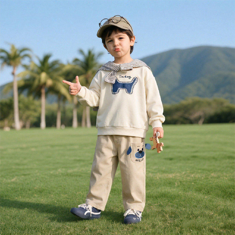 婧麒儿童裤子男童春装纯棉长裤春秋款婴儿女童宝宝春季休闲工装裤