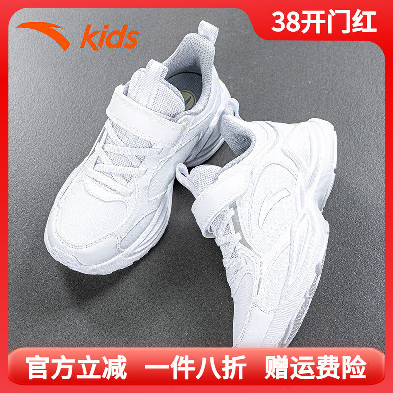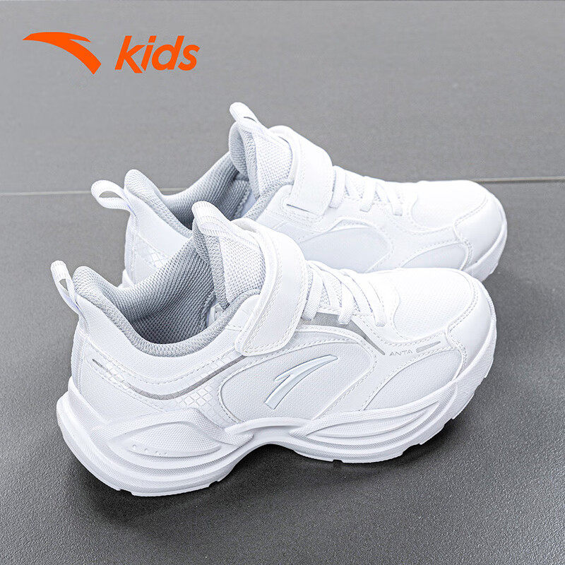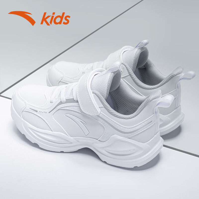 安踏童鞋男童小白鞋儿童白色运动鞋软底小学生跑步鞋冬季皮面鞋子