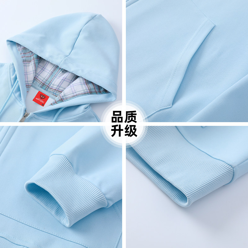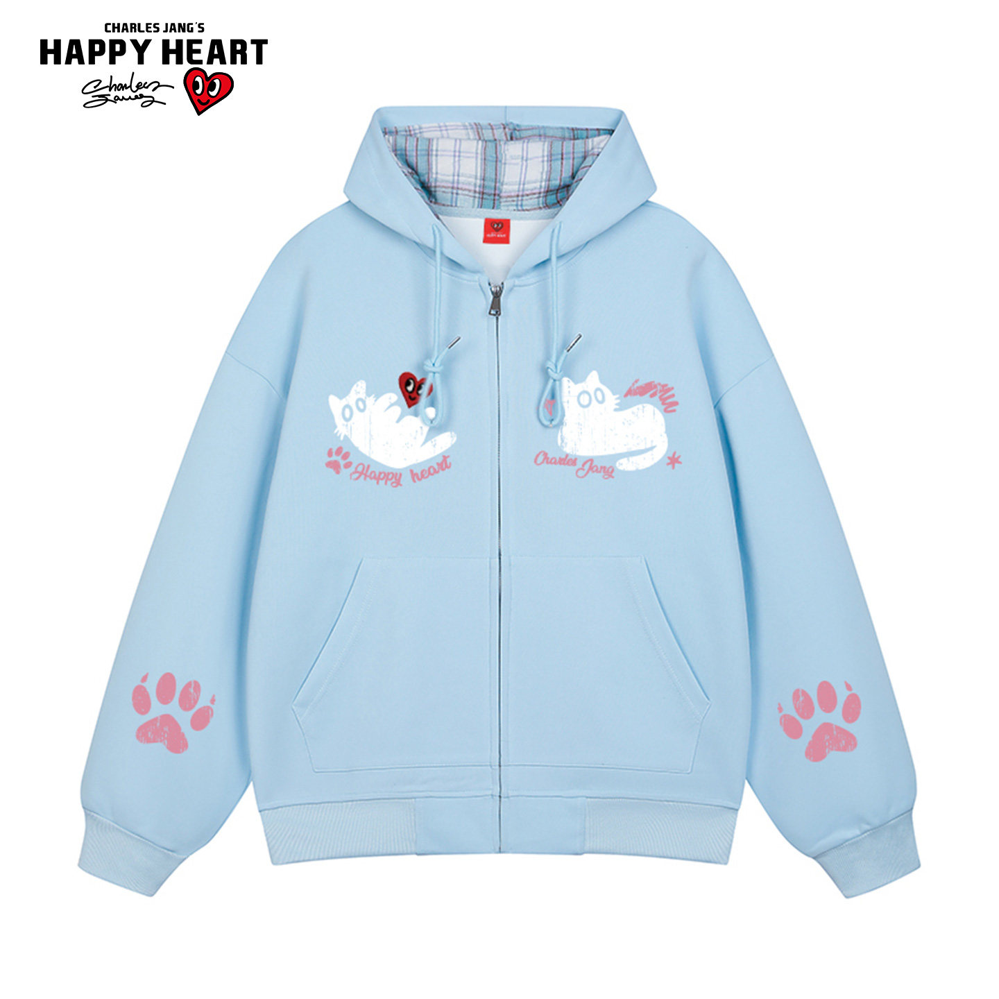 查尔斯桃心猫爪印花连帽卫衣男女款春季新款休闲百搭格子开衫外套