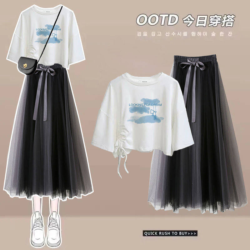 女童裙子高级感夏季薄款套装2026新款夏装12岁13中大童网红半身裙