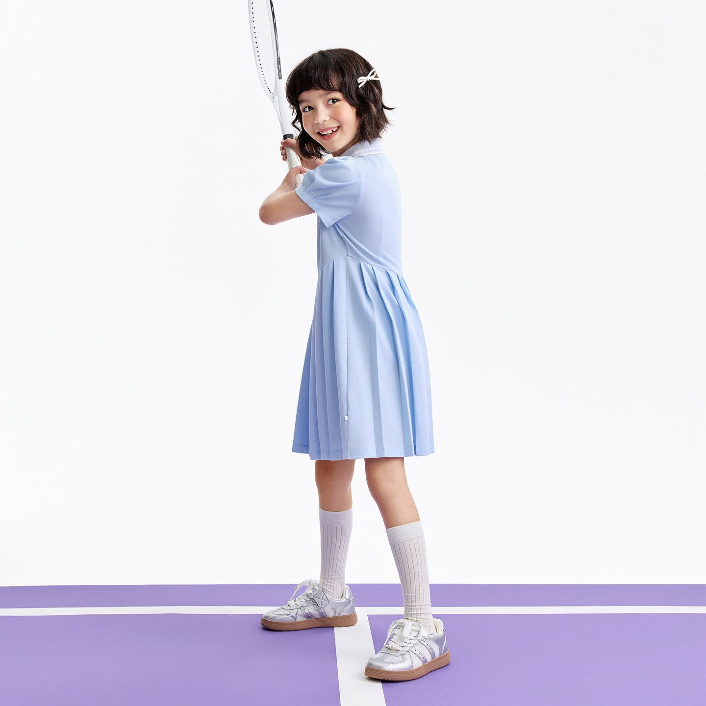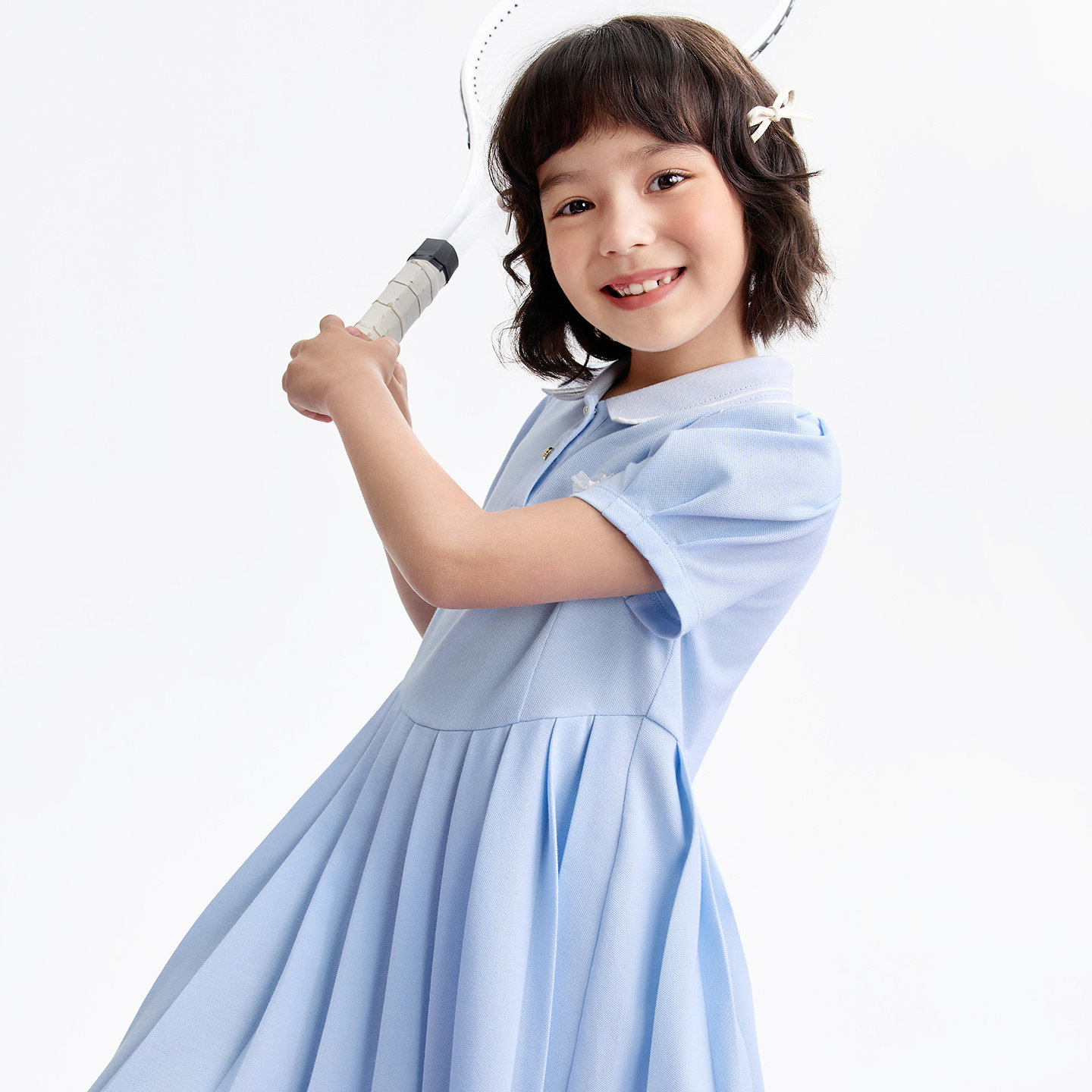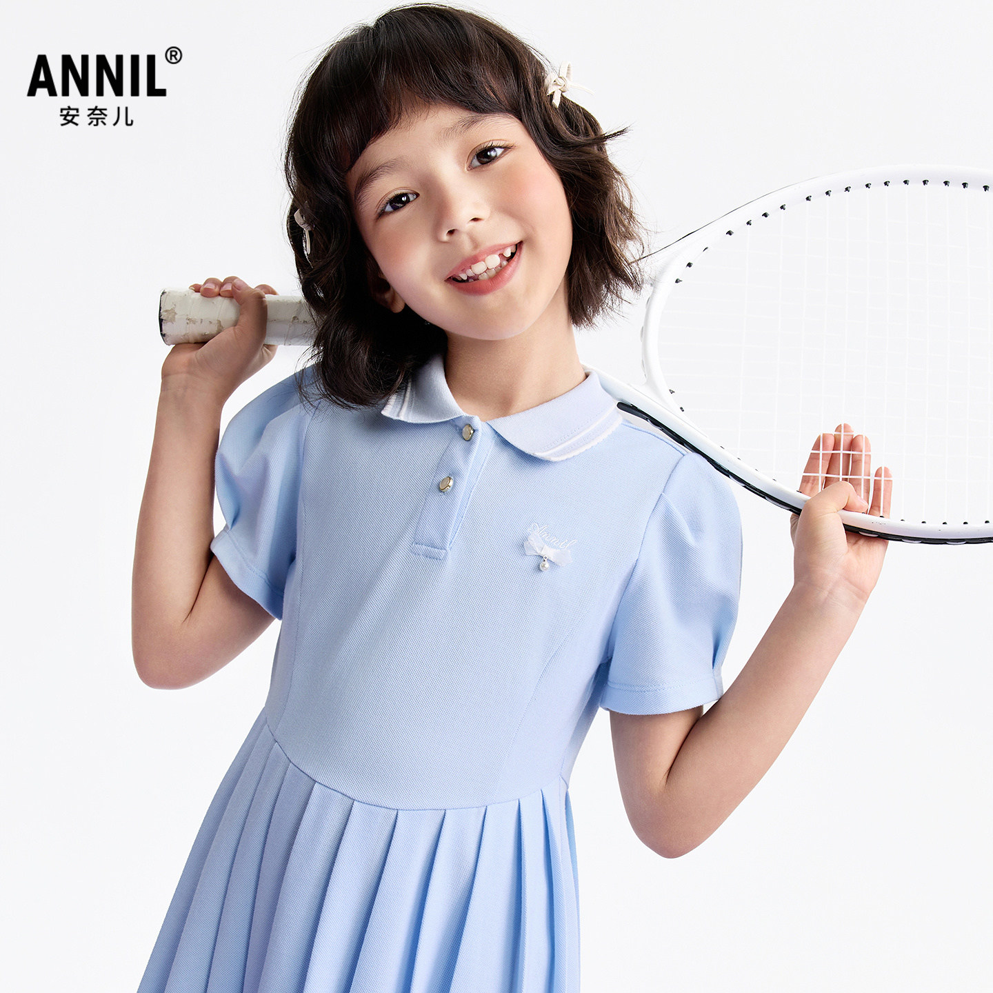 安奈儿童装女童翻领短袖连衣裙2026夏运动裙网球裙复古学院风裙子