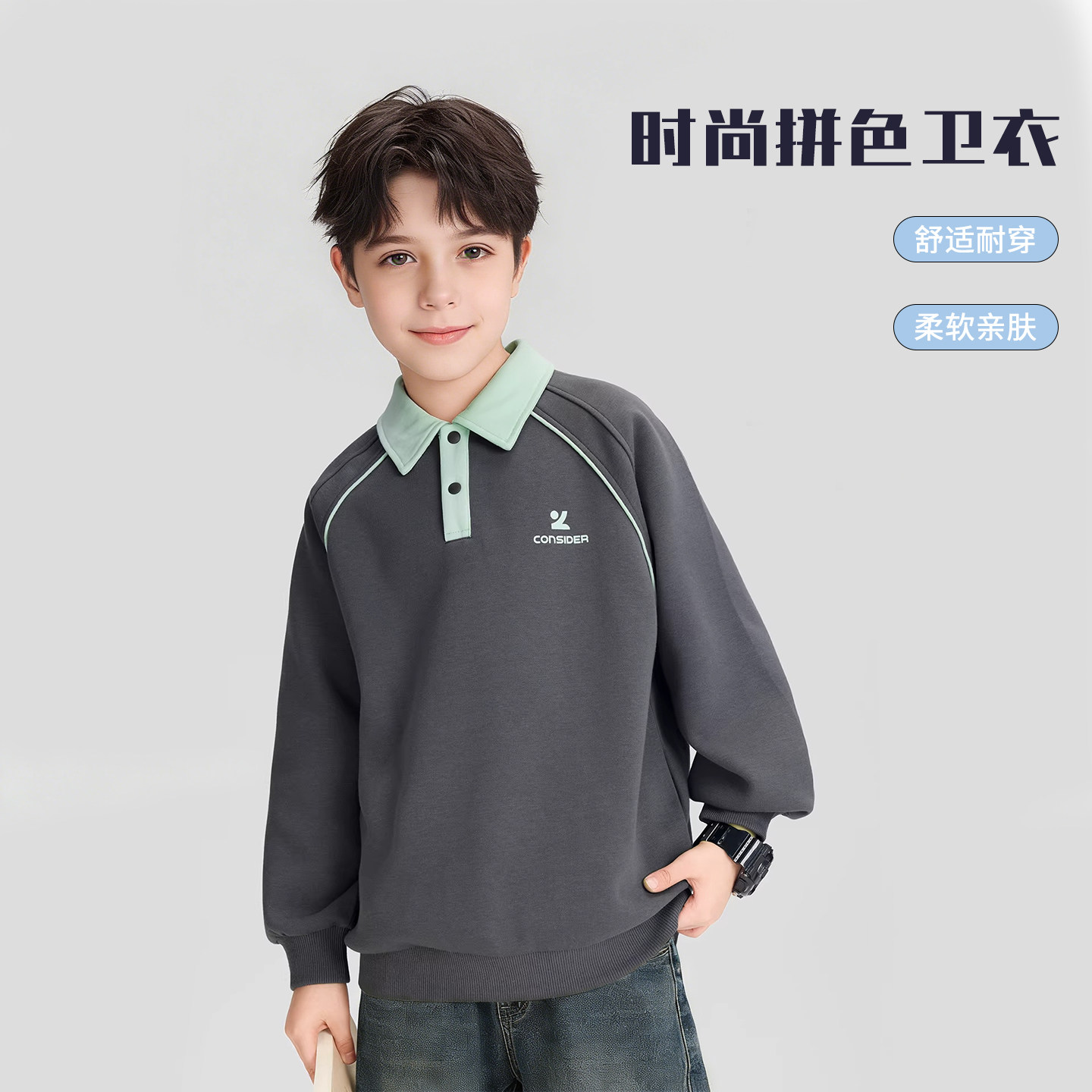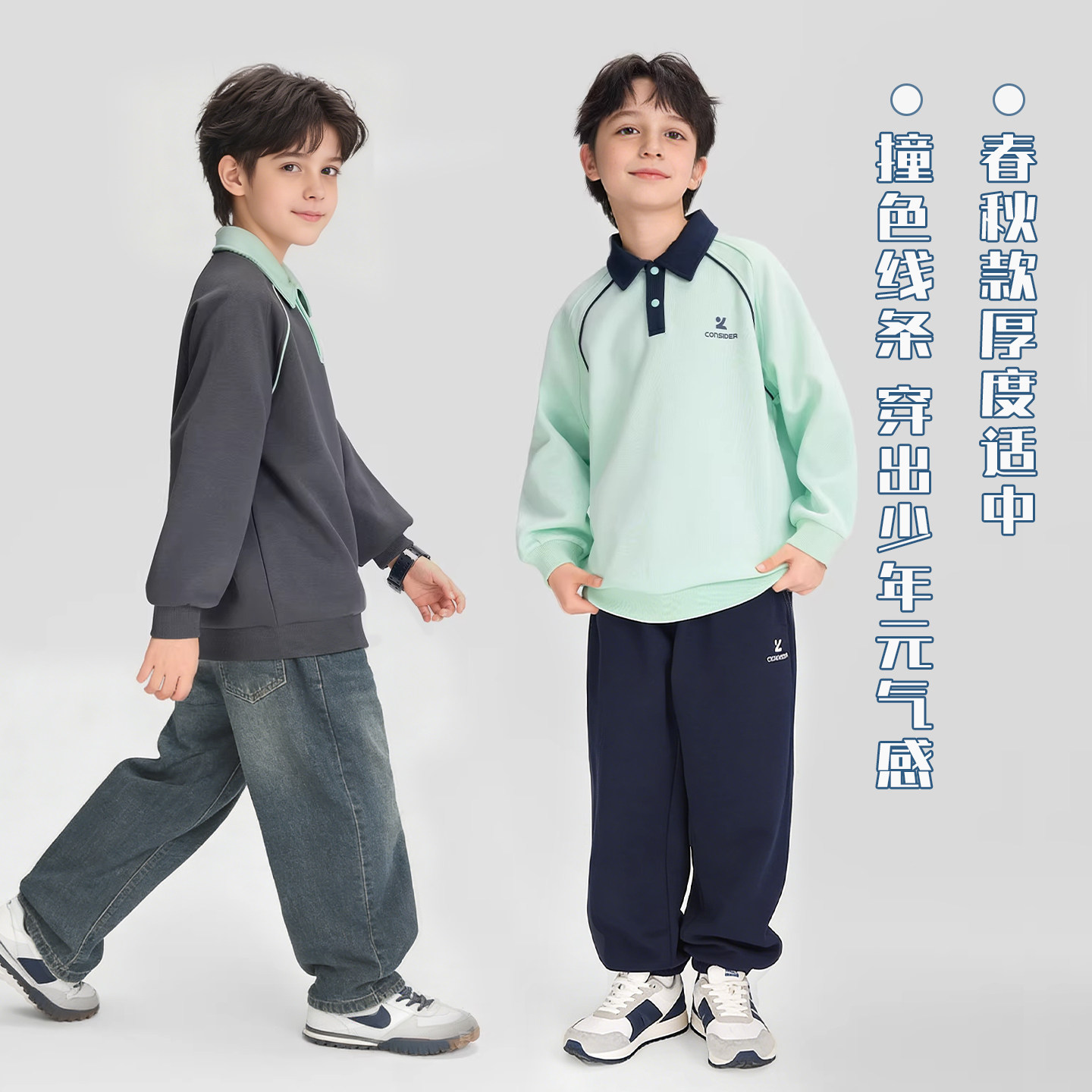 巧比童童装男童POLO衫儿童卫衣2026新款好看春装大童上衣长袖T恤
