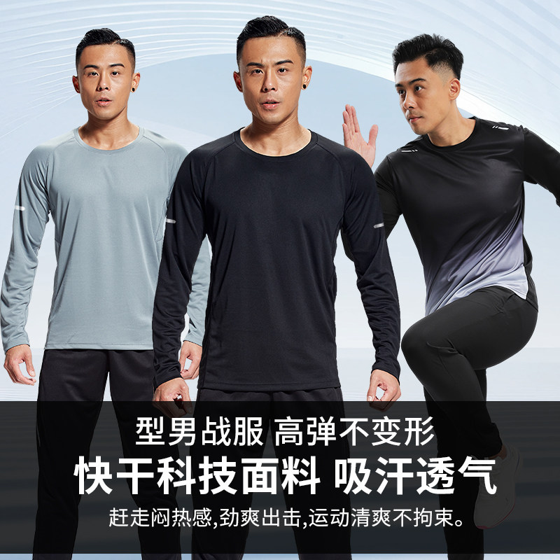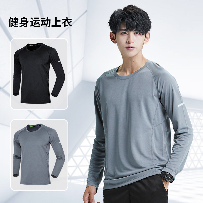 运动T恤男春秋冬季长袖宽松速干衣休闲跑步衣服篮球训练健身上衣