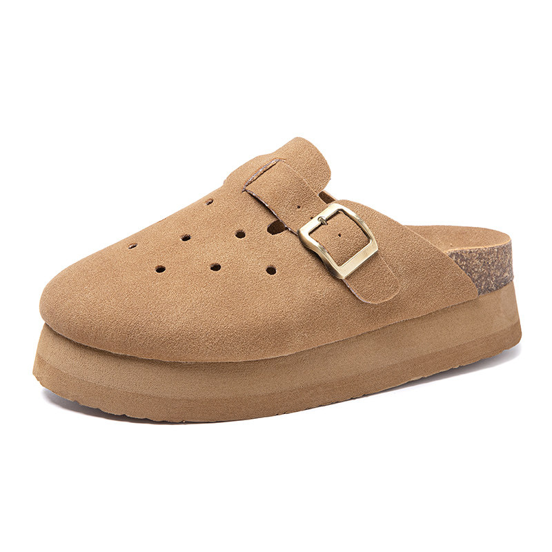 小码女鞋313233外穿2025春季新款鞋复古厚底勃肯鞋女包头洞洞拖鞋