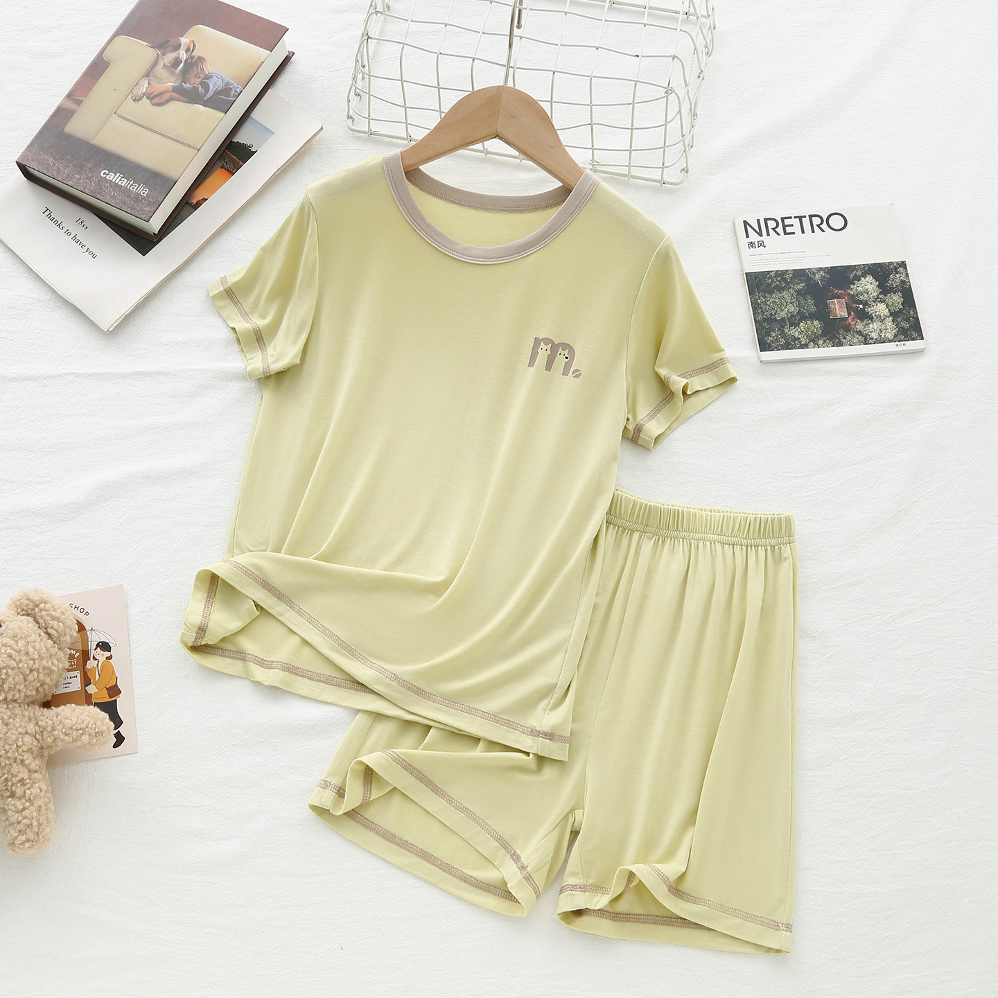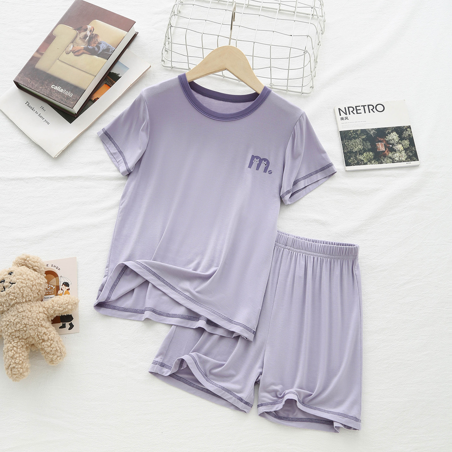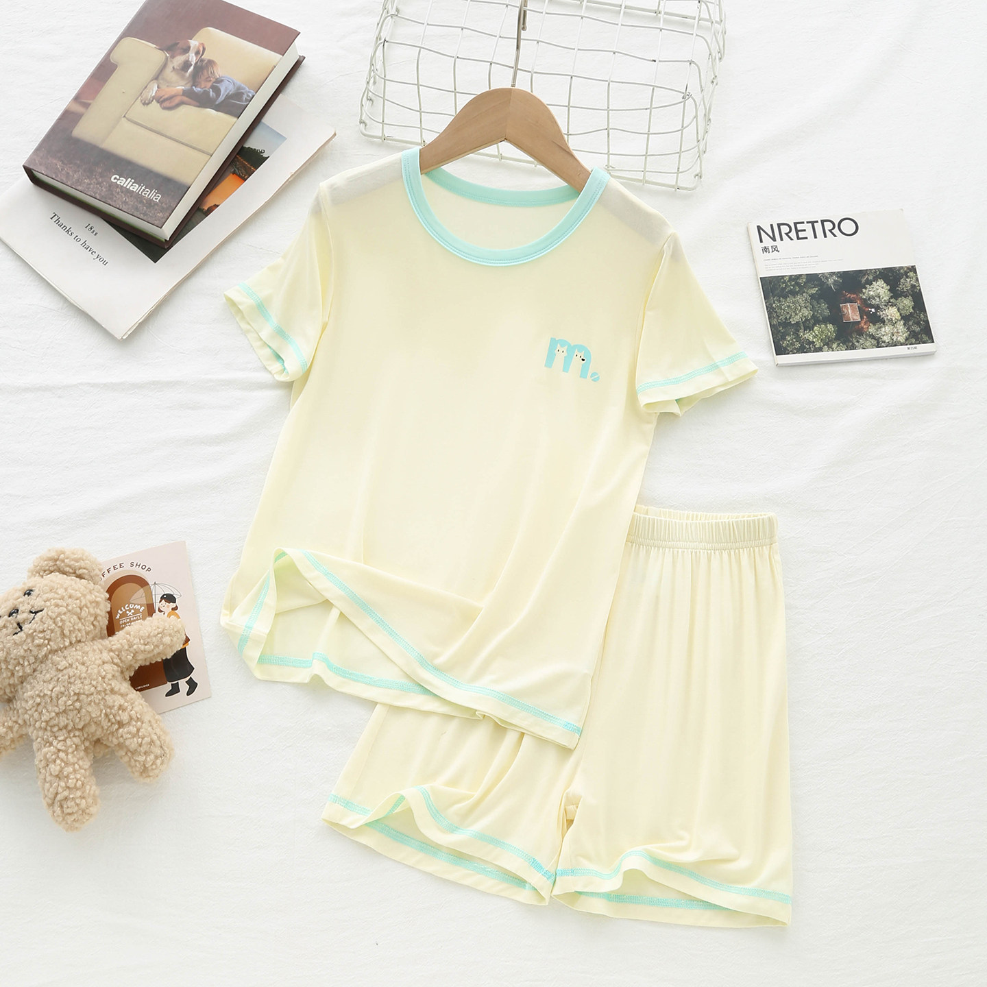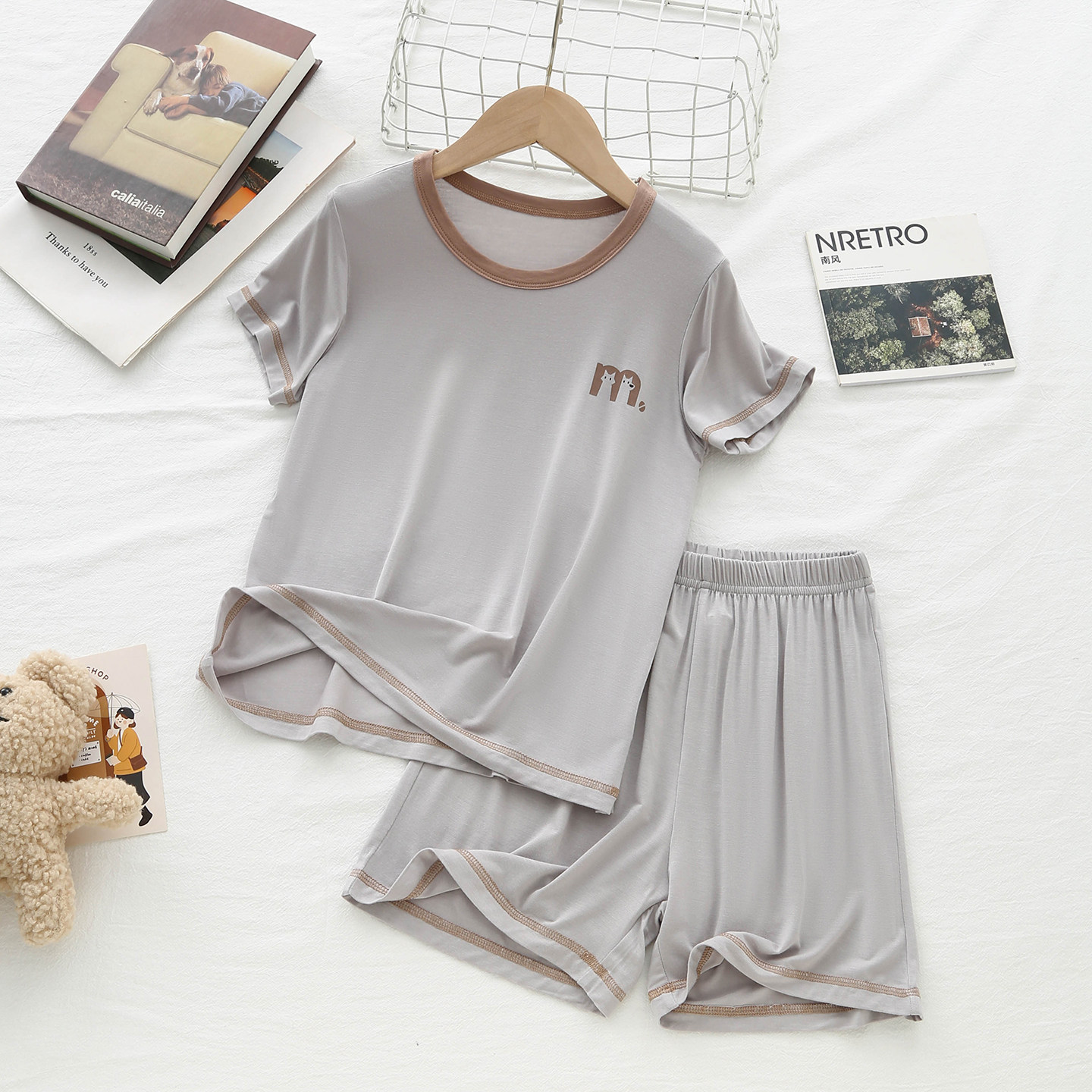 夏季儿童莫代尔睡衣女孩男童薄款睡衣青少年简约款短袖午休宿舍