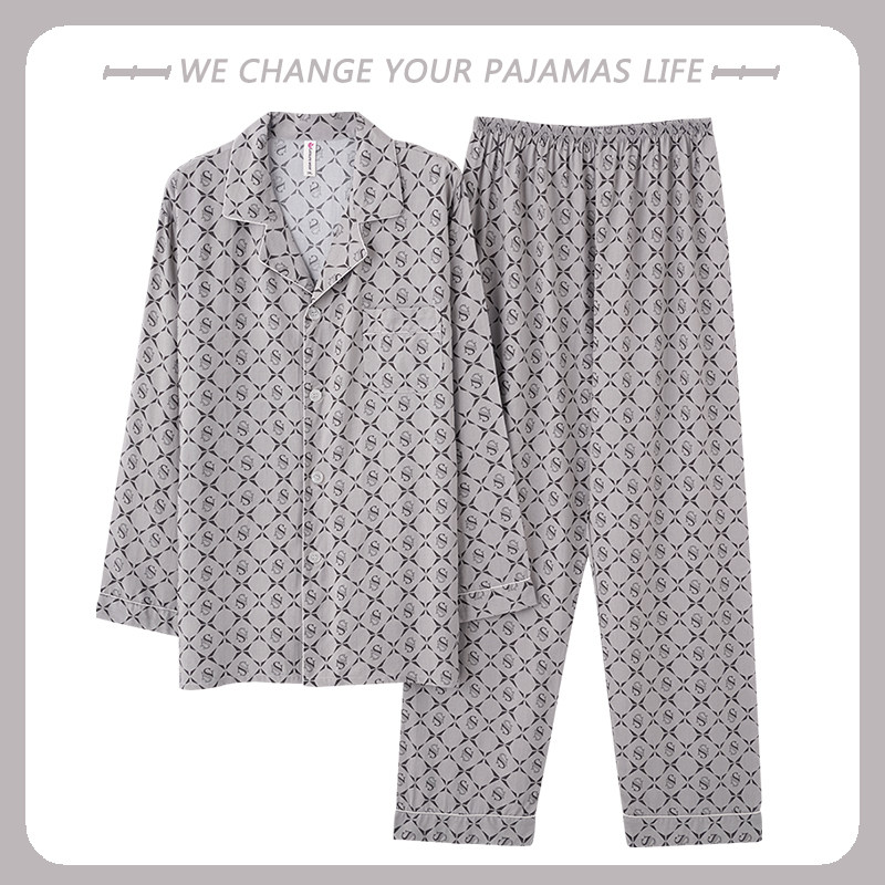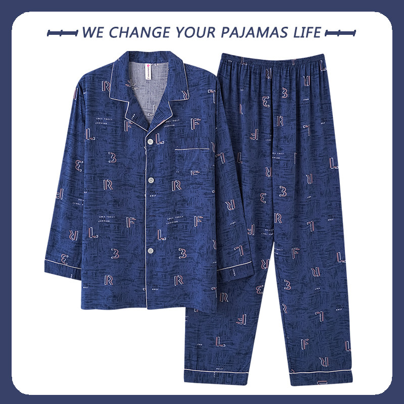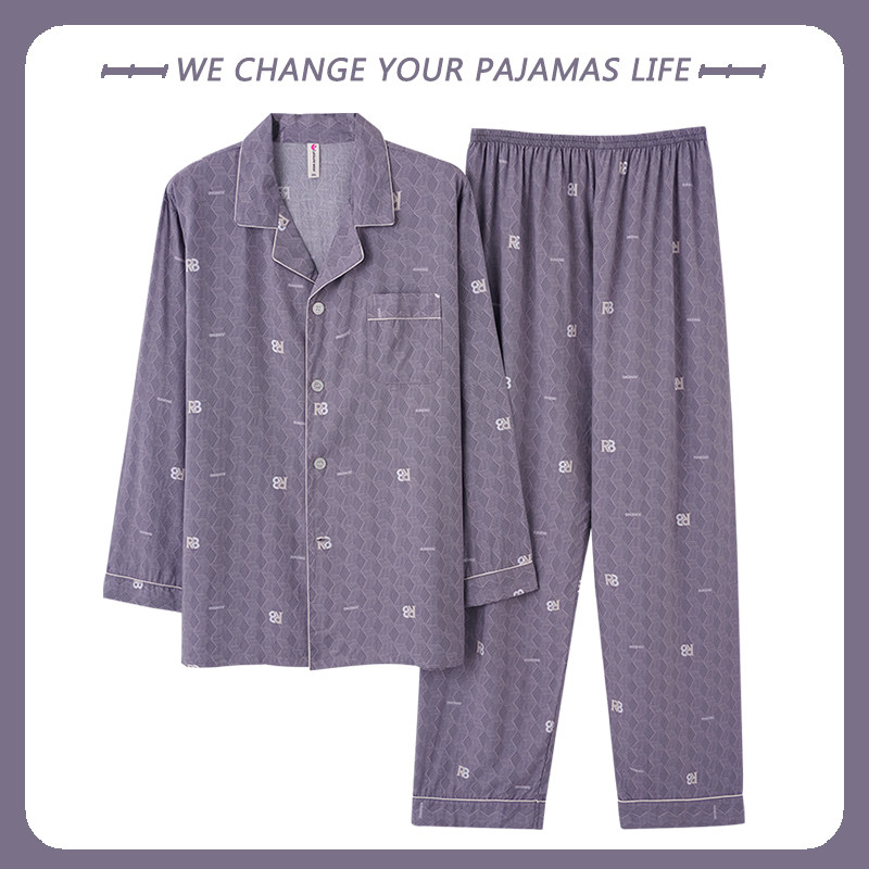 棉绸睡衣男士春秋季长袖2025新款人造棉休闲大码家居服套装可外穿