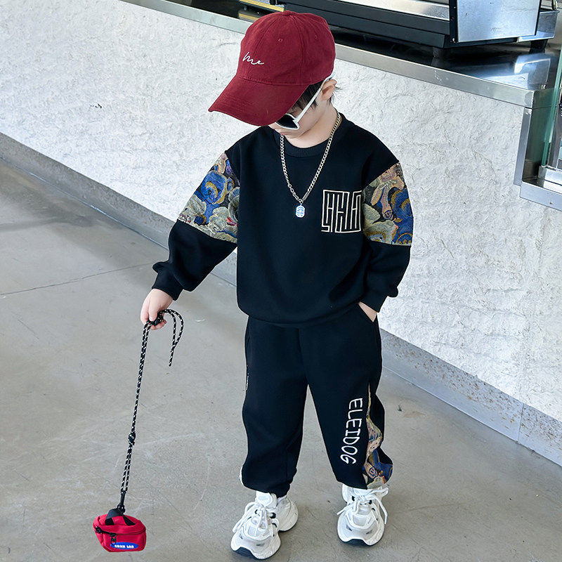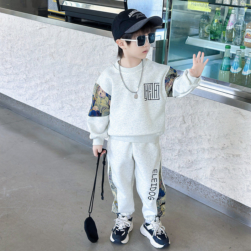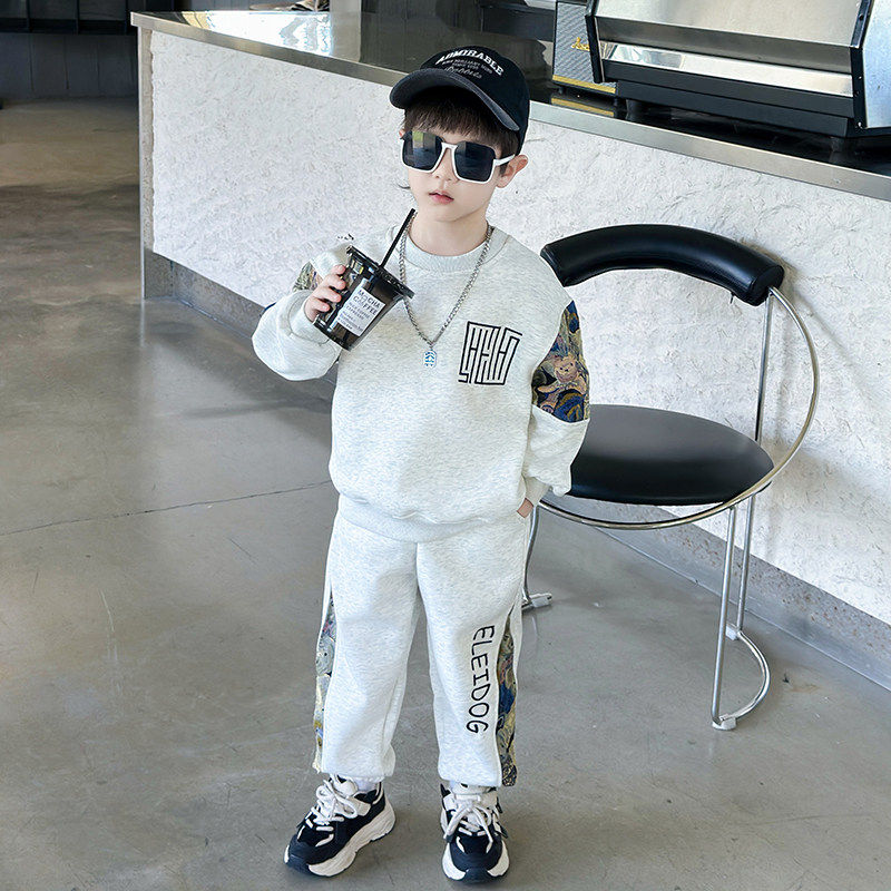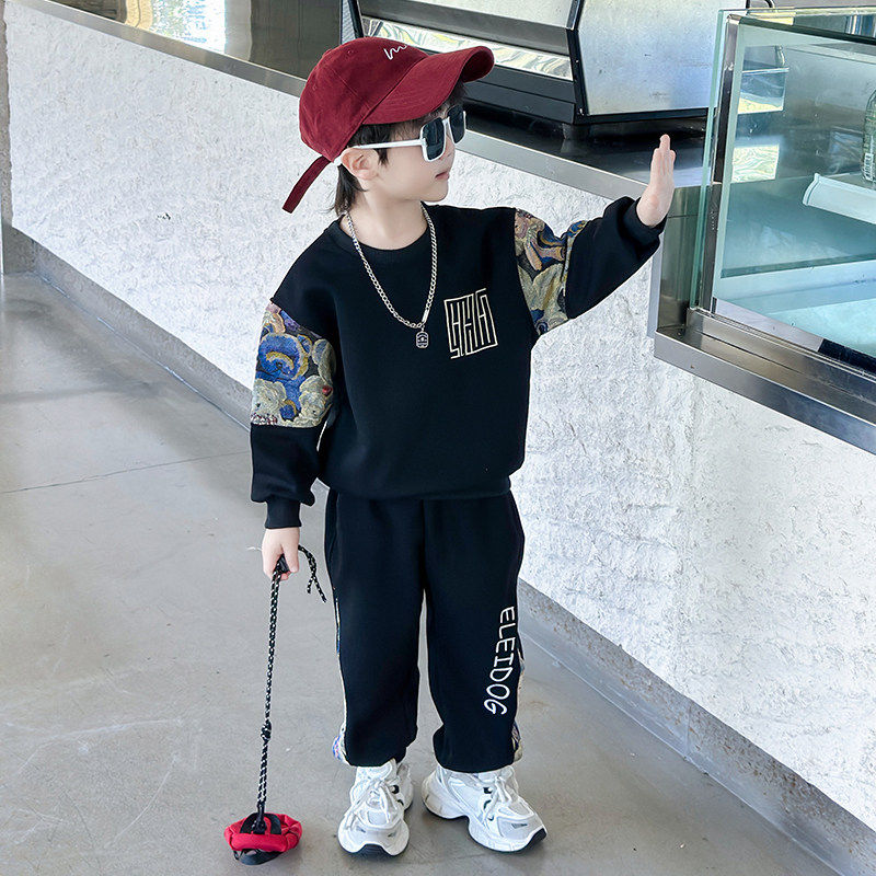全棉纯棉男童春秋运动套装儿童卫衣两件套2026新款男孩帅气春装男