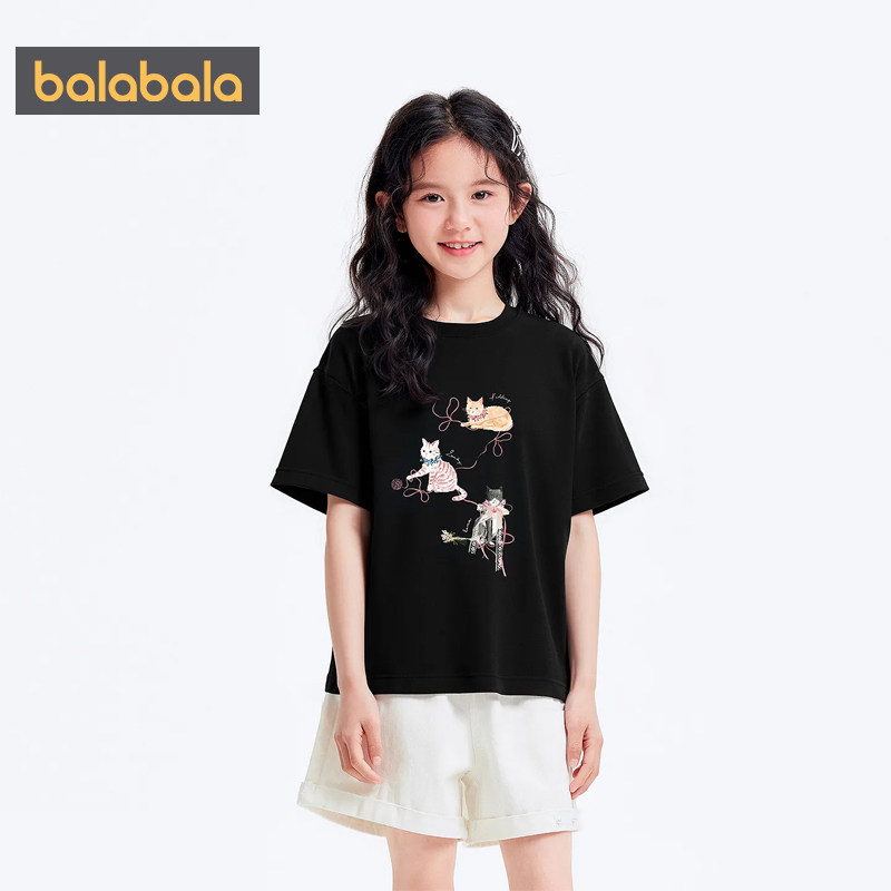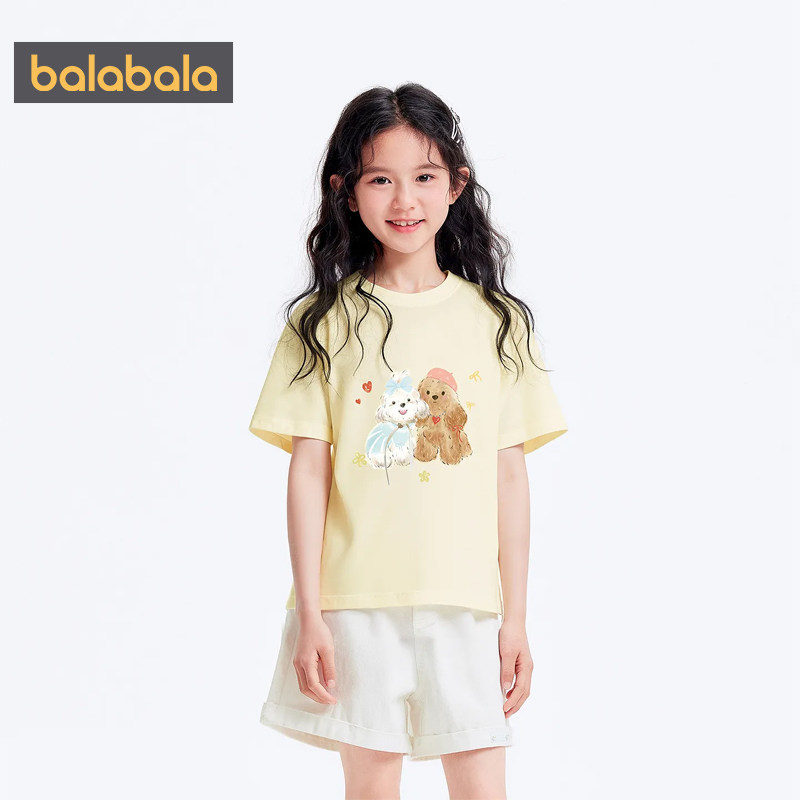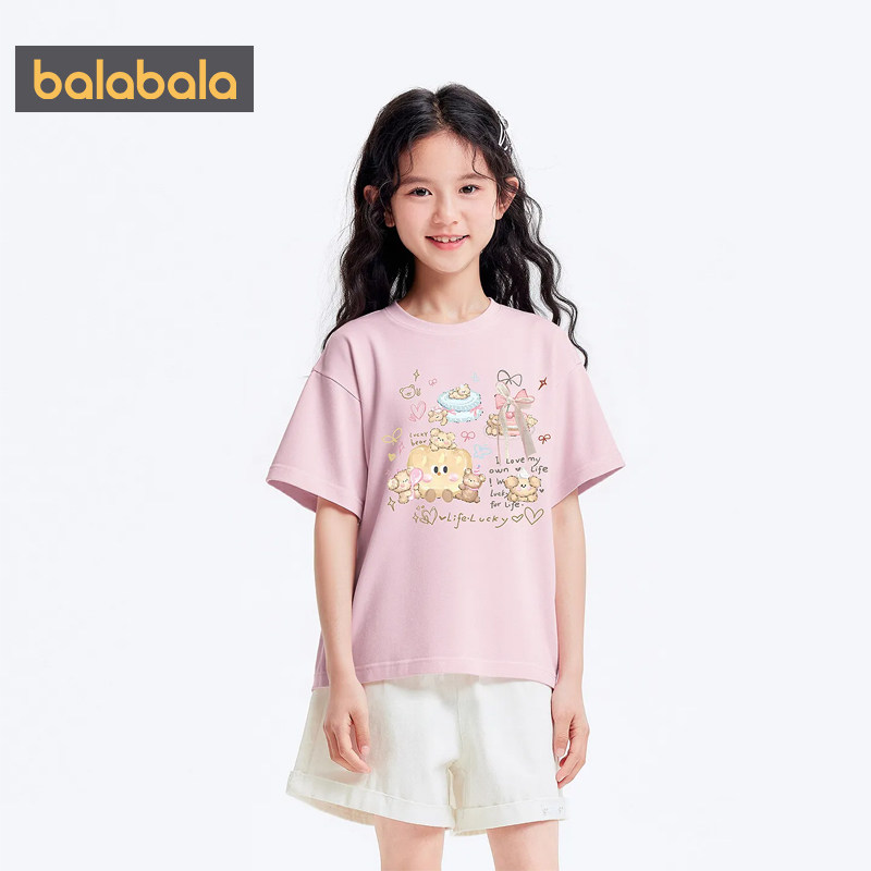 巴拉巴拉女童短袖t恤中大童速干上衣夏装新款童装儿童纯棉衣服潮