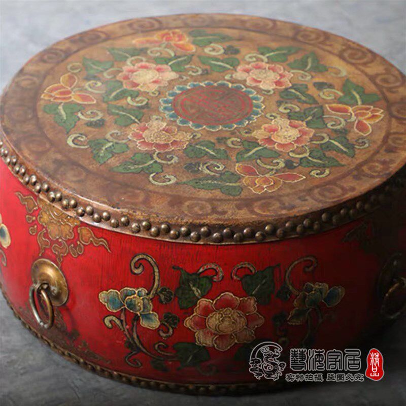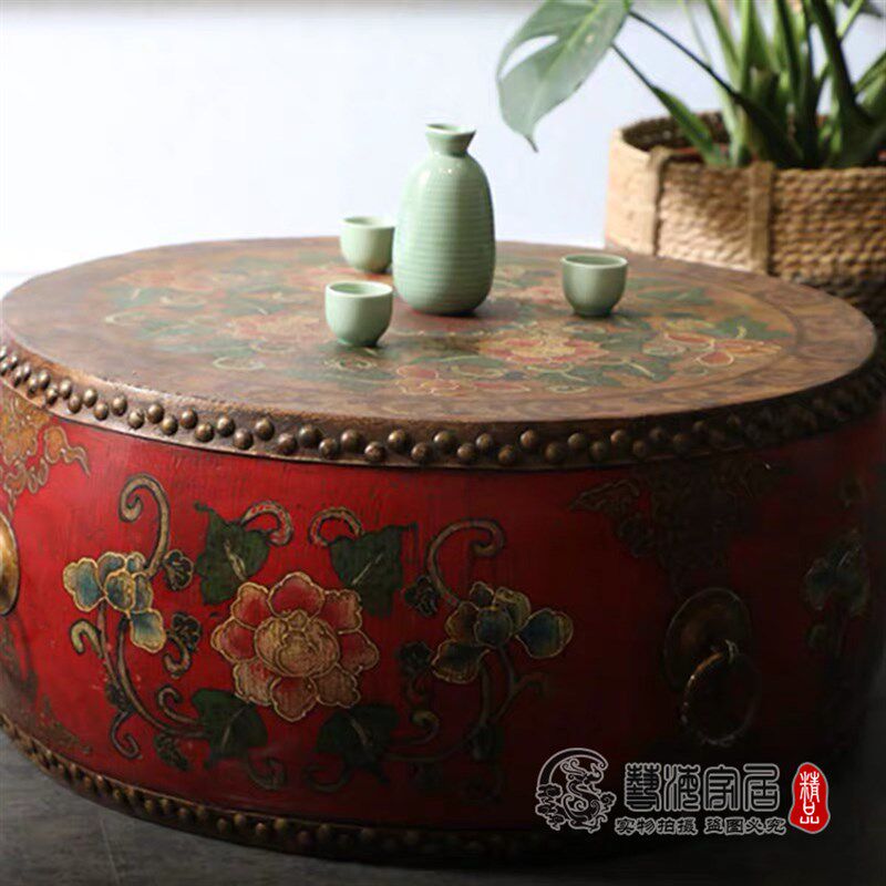 鼓墩鼓凳艺海家俱新中式彩绘牛皮摆件花盆鼓茶几鼓U圆形功夫茶鼓