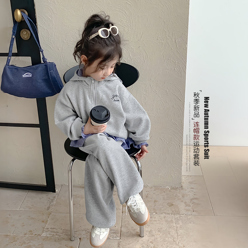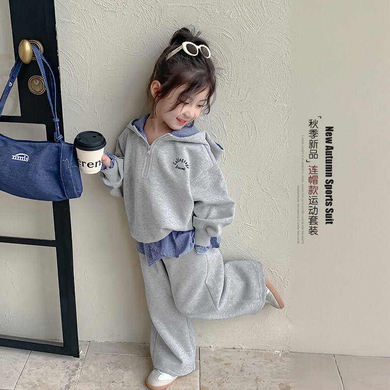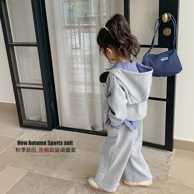 女童套装春秋款2026新款洋气女孩连帽卫衣春季儿童运动裤子两件套