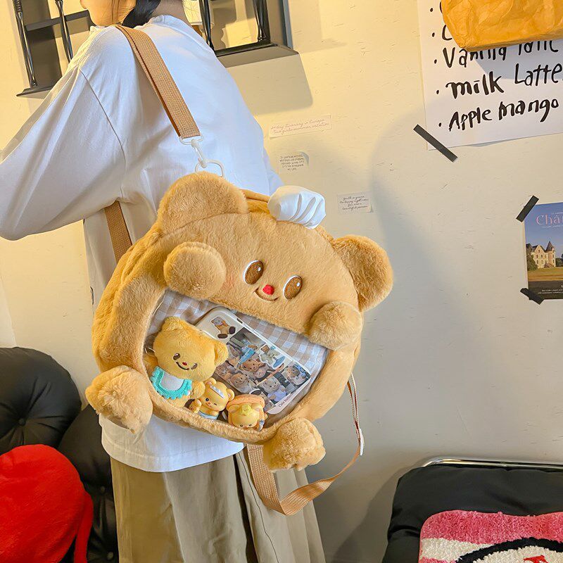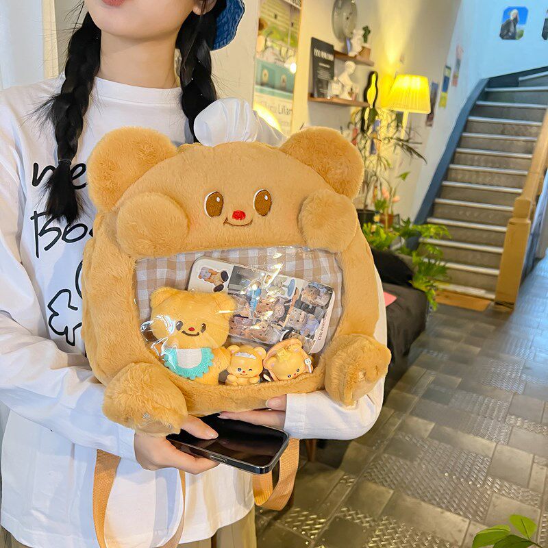 黄油小熊痛包大容量可爱卡通毛绒双肩包毛茸茸个性书包学生党女生