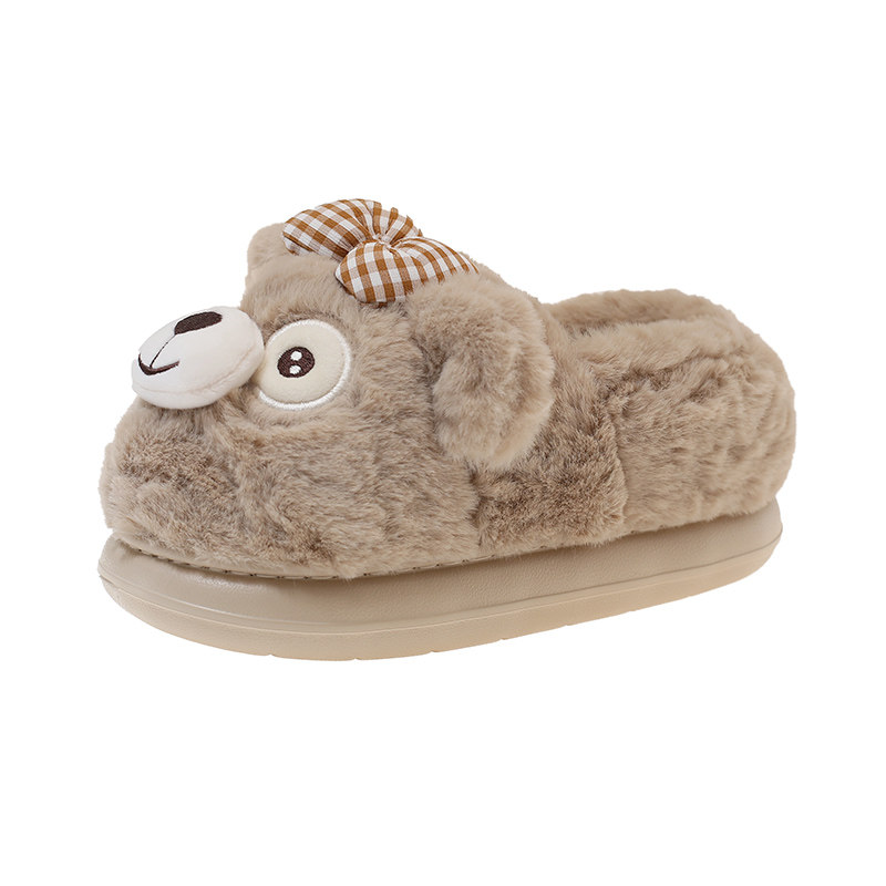 厚底棉鞋女款冬季可爱蝴蝶结小熊居家室内包跟月子保暖毛绒棉拖鞋