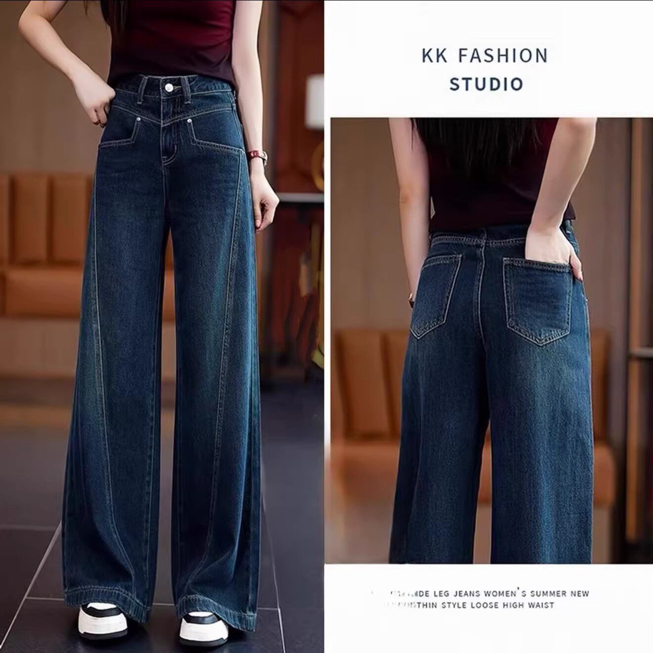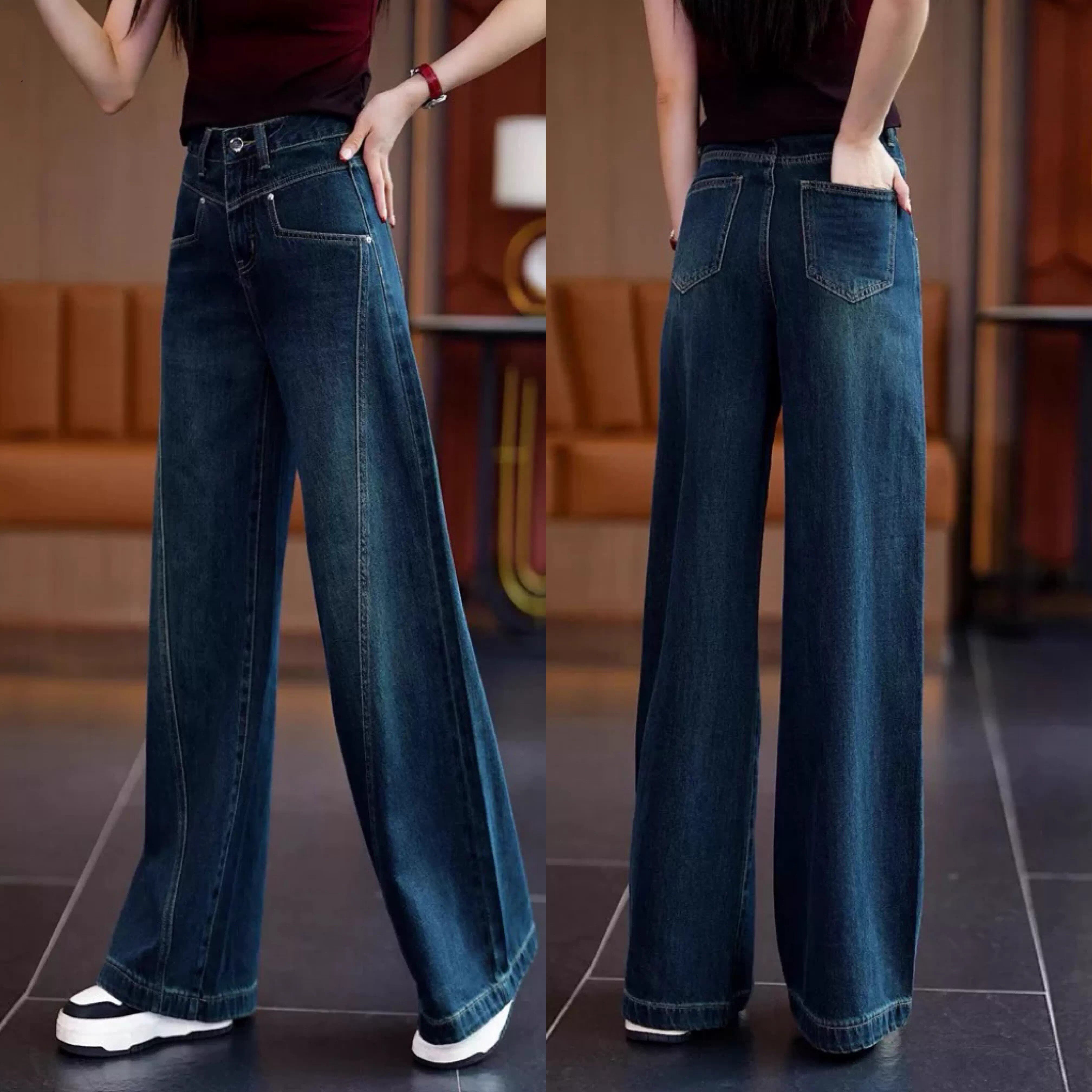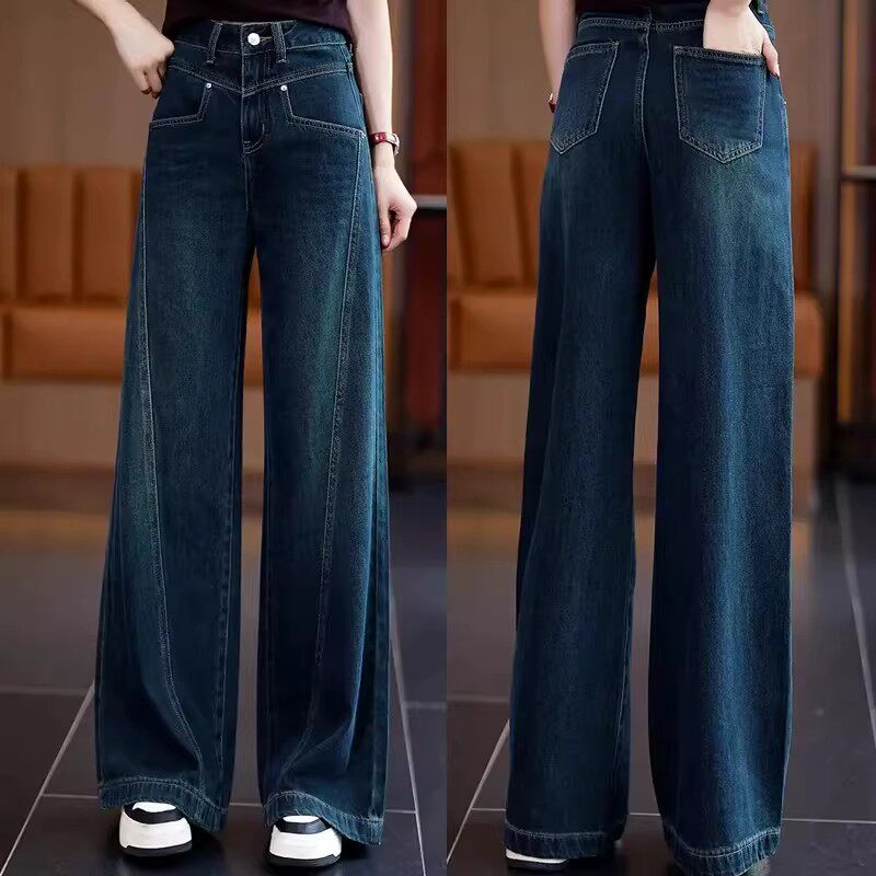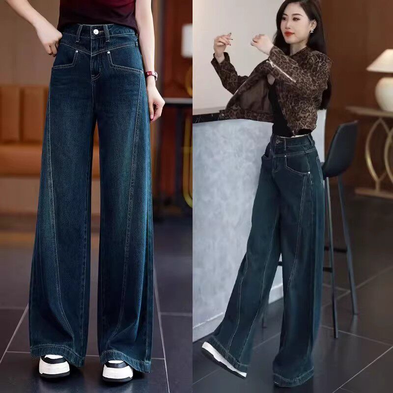 新塘加绒牛仔裤女2025新款高腰秋宽松女款爆款小个子直筒阔腿裤子