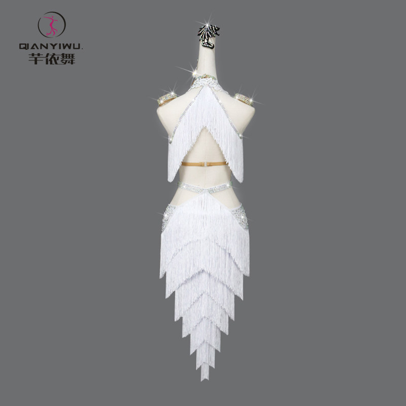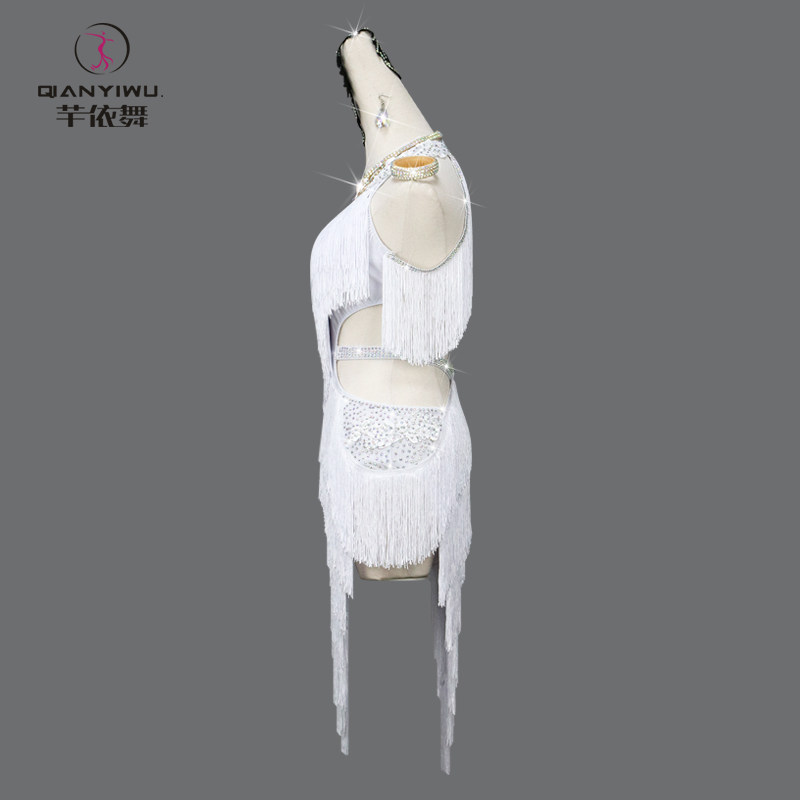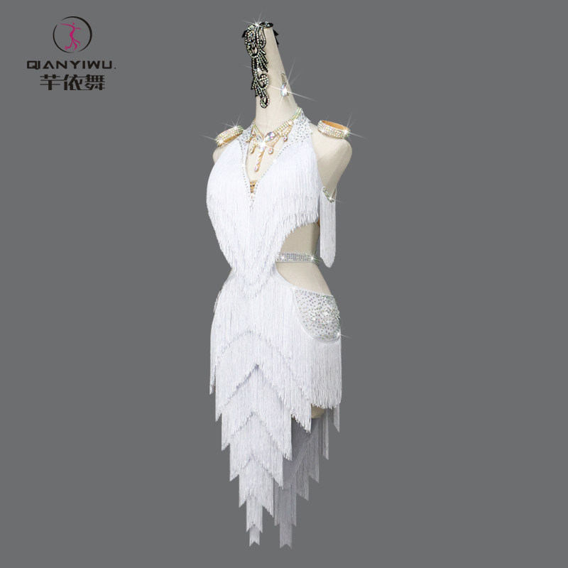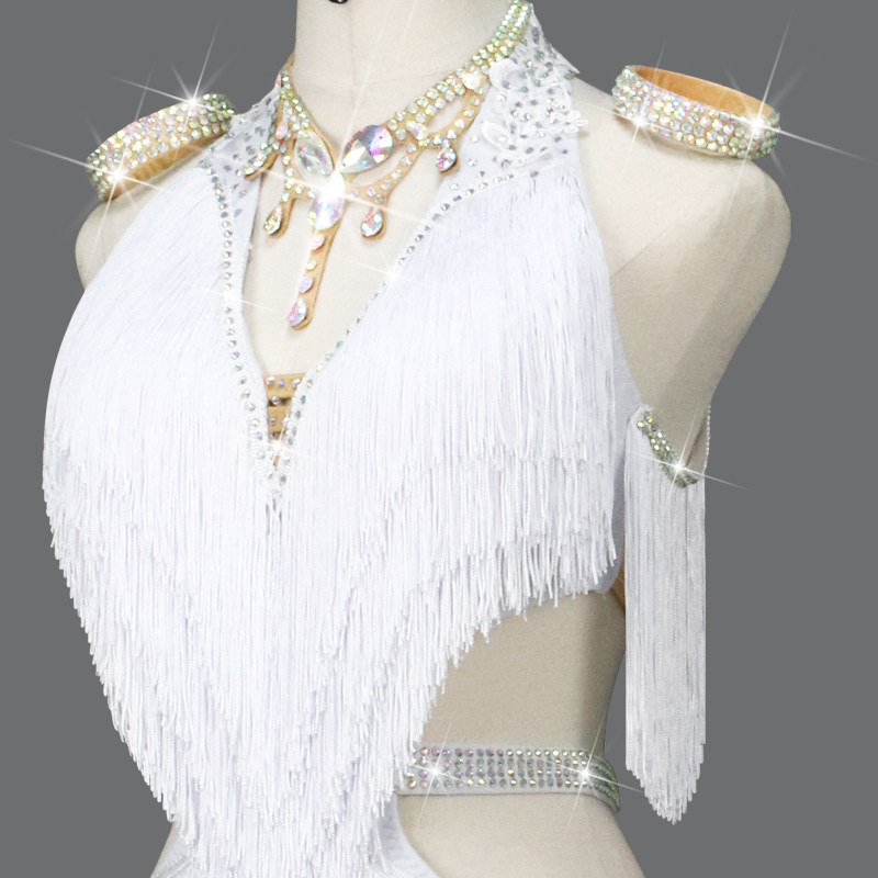 2026新款专业白色拉丁舞比赛表演出服伦巴舞蹈流苏连衣裙花服定制