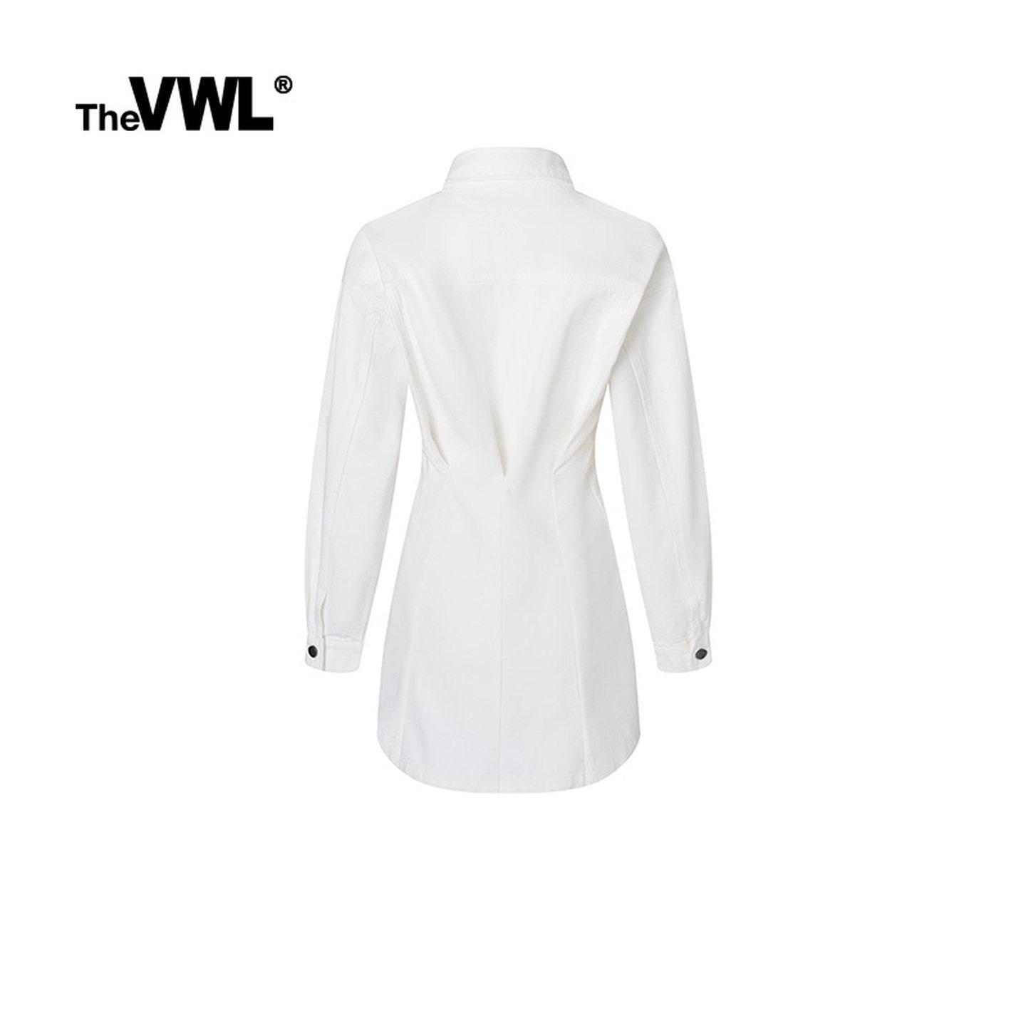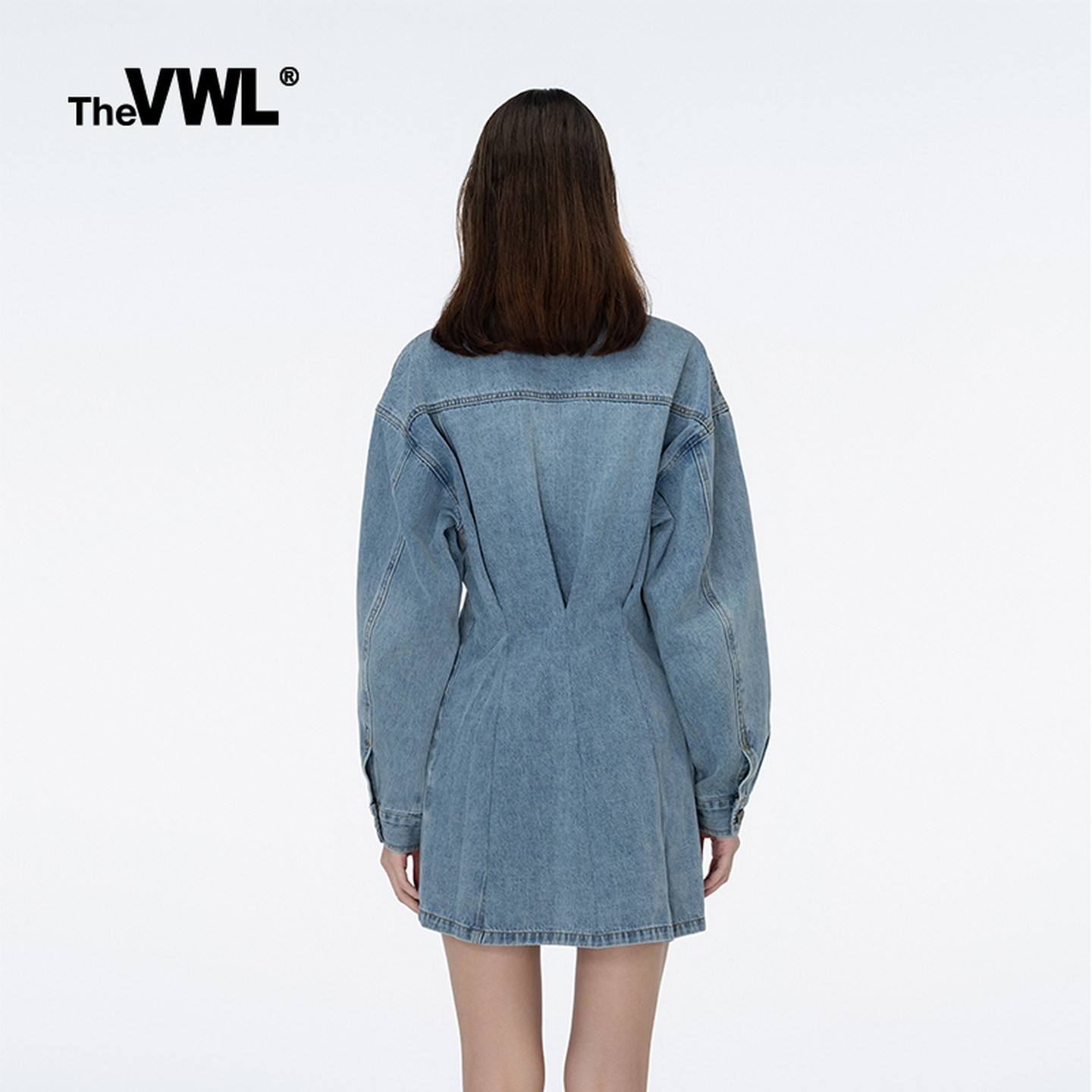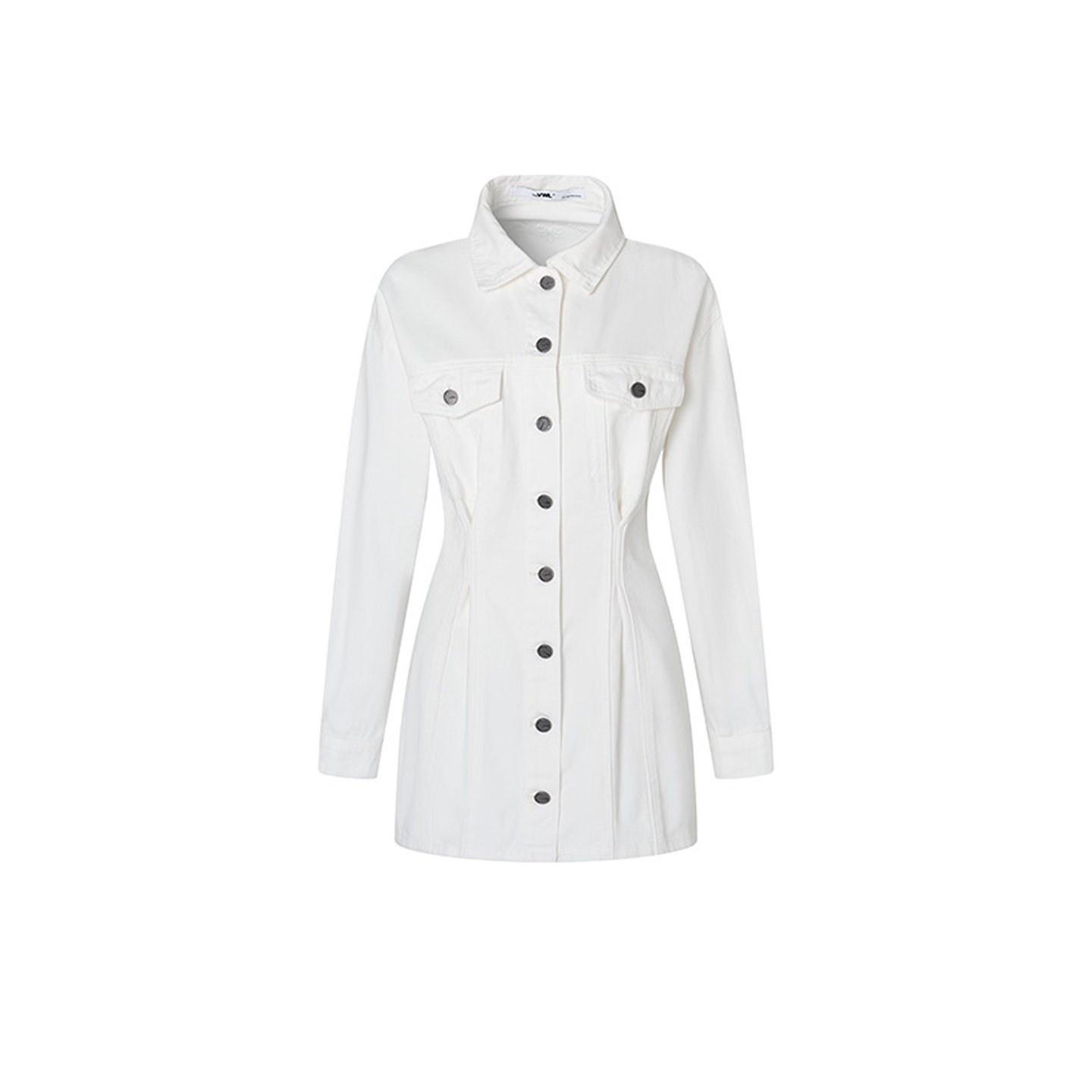VWL春秋甜酷休闲收腰连衣裙外套修身气质白色牛仔蓝长袖连衣裙
