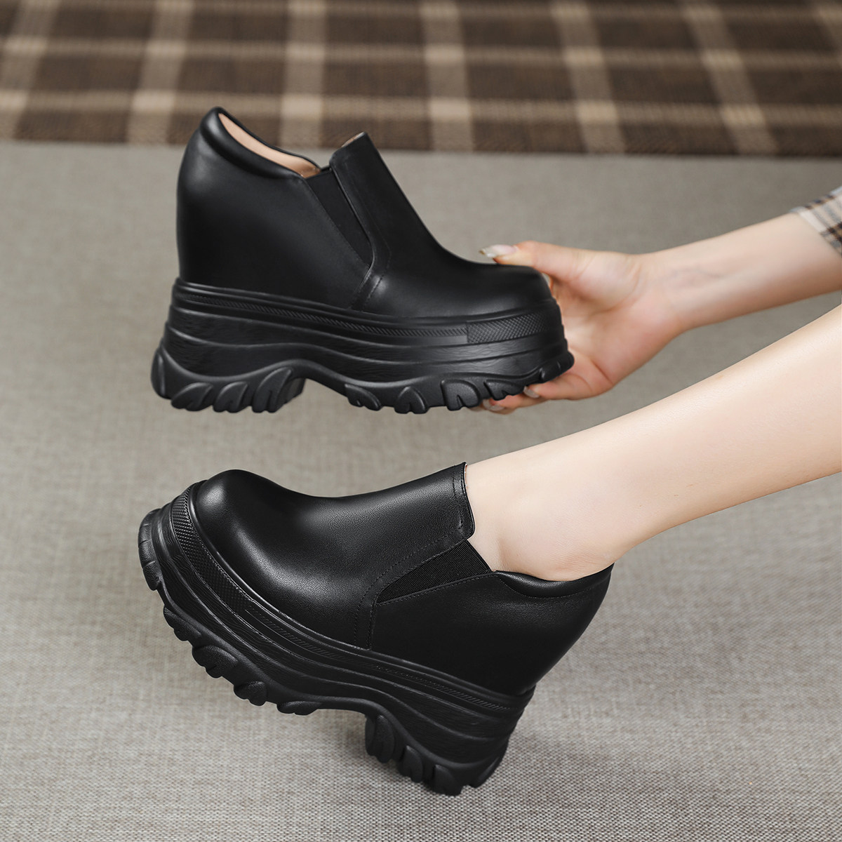 12cm粗跟超高跟厚底小个子增高鞋英伦风小皮鞋真皮时尚乐福鞋女鞋