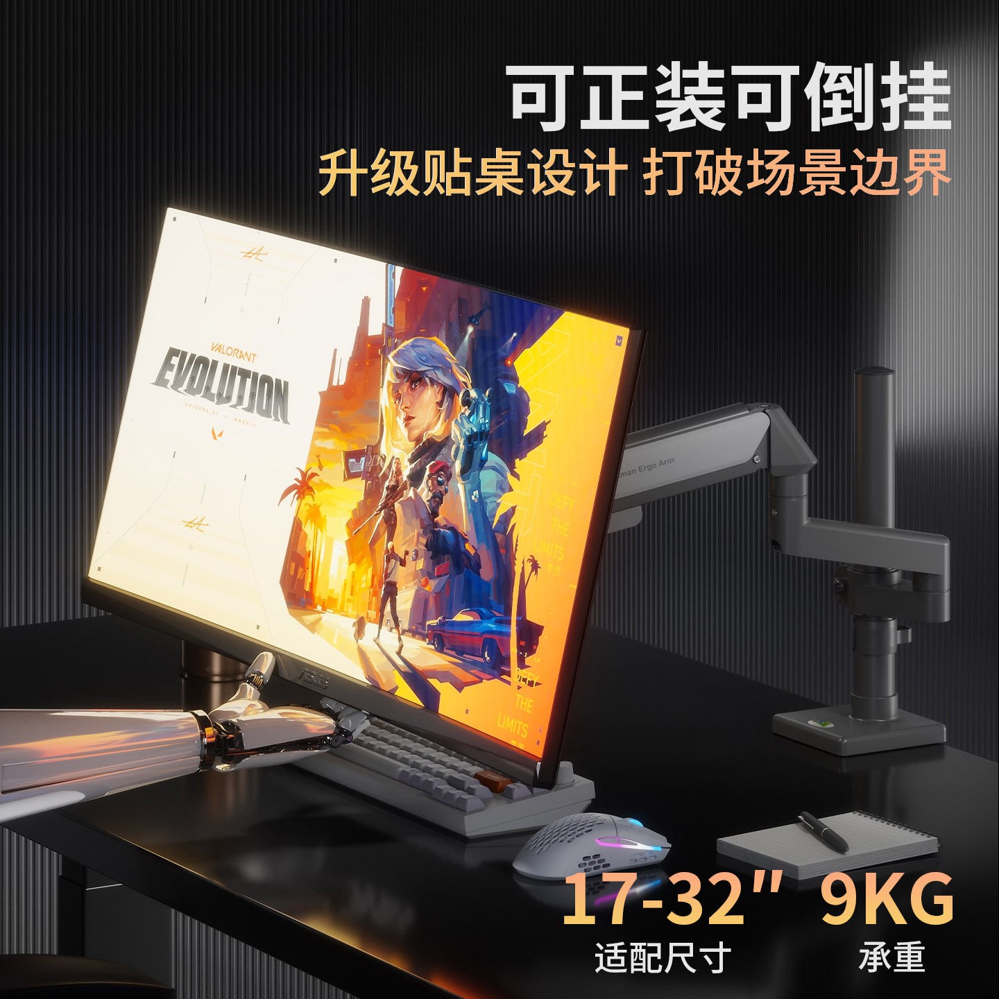 倒挂显示器支架屏幕增高架子便携屏底座显示屏悬臂台式电脑机械臂