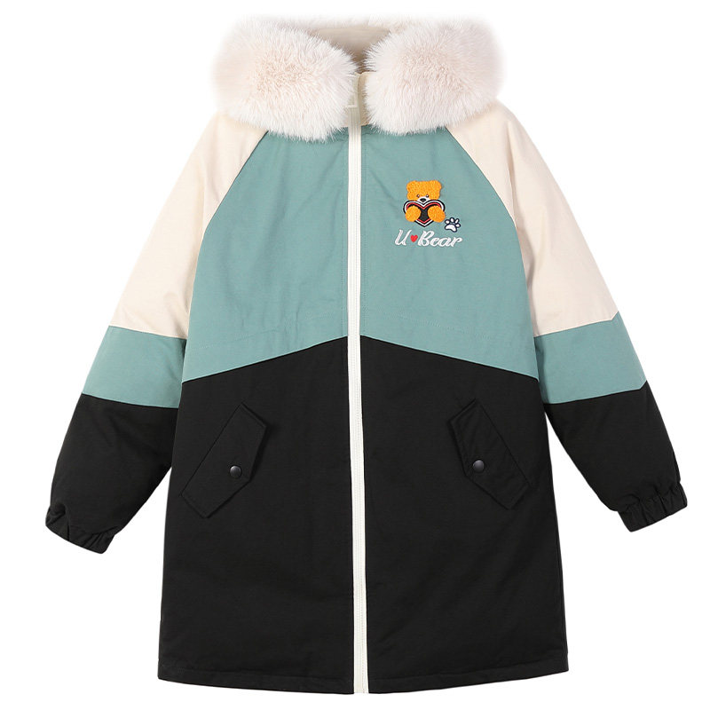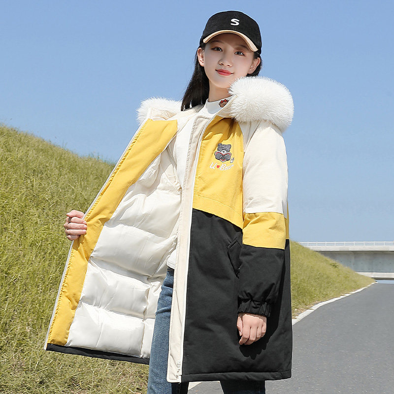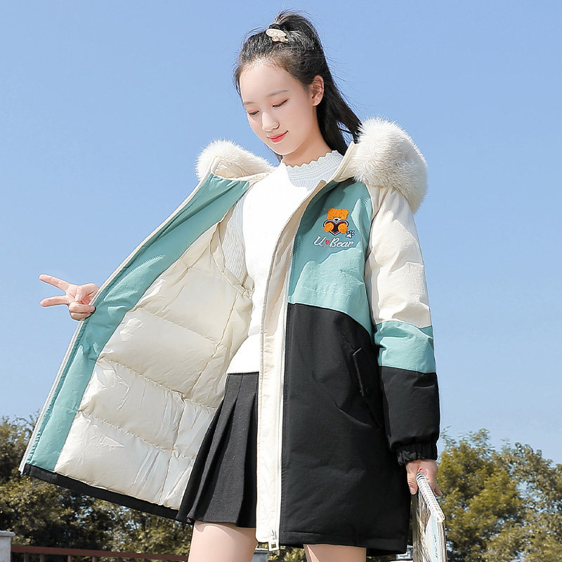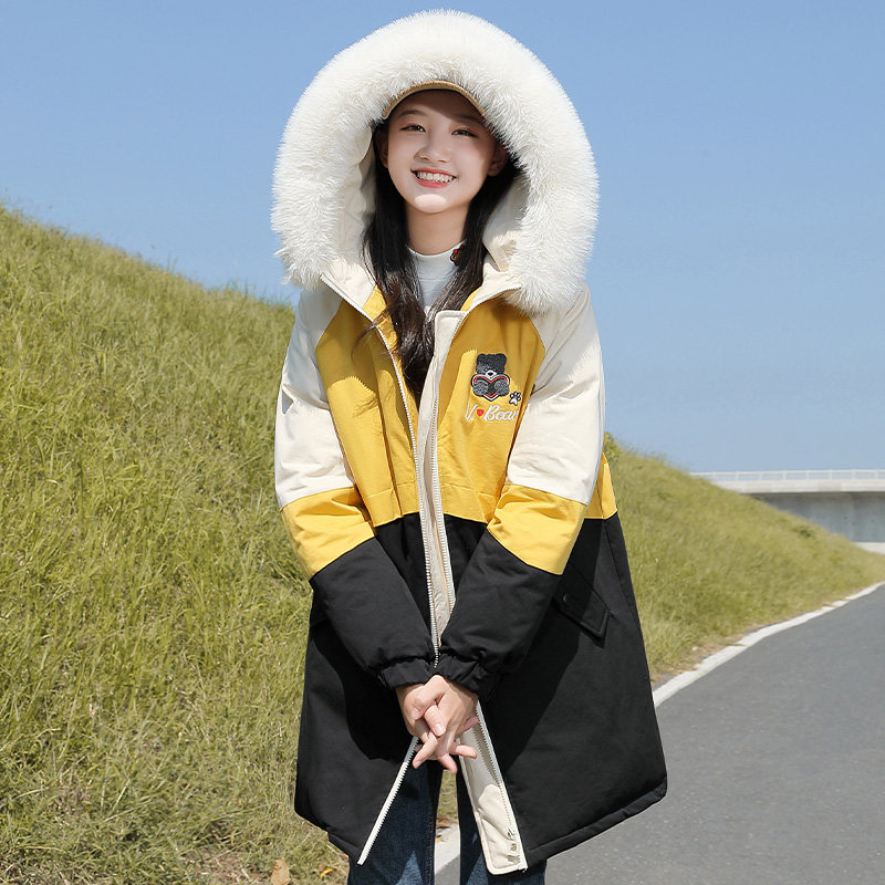 中学生羽绒棉服少女冬装加绒外套中长款2021新款高初中生棉衣棉袄