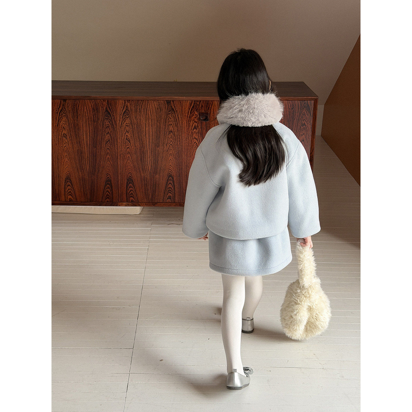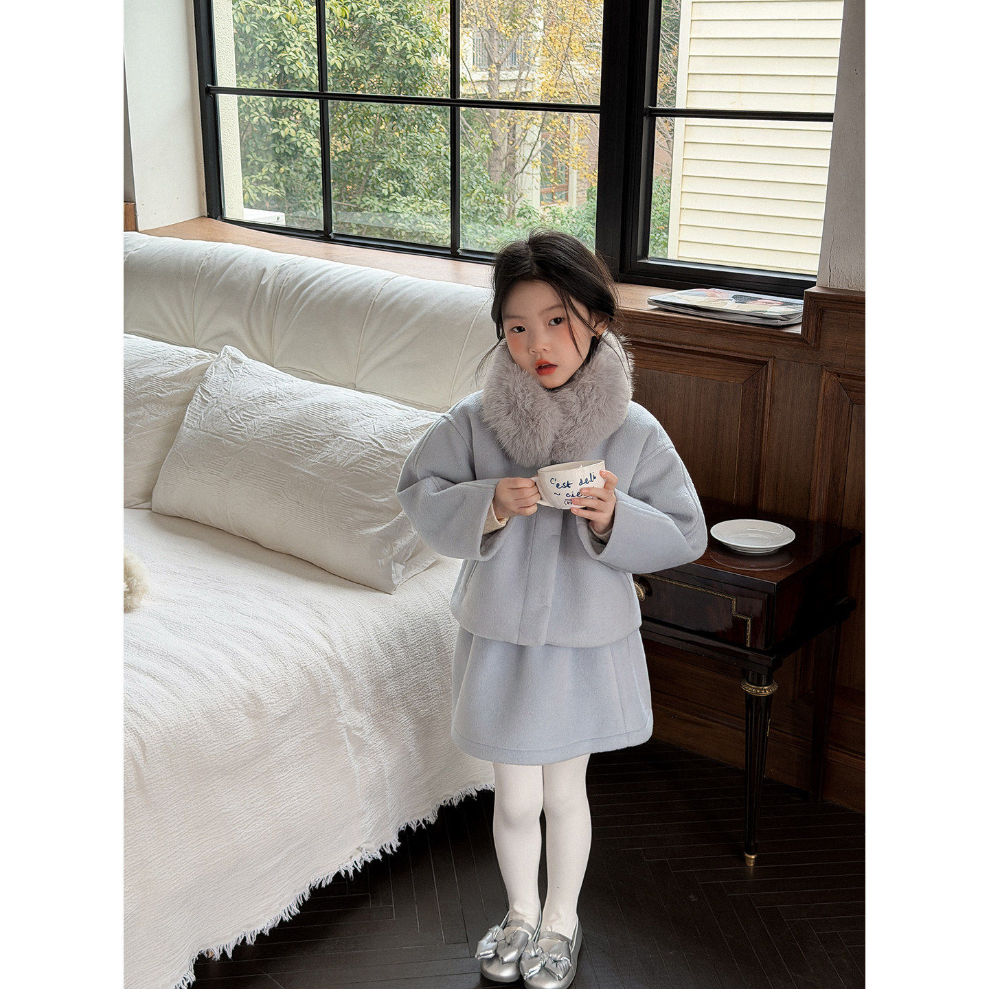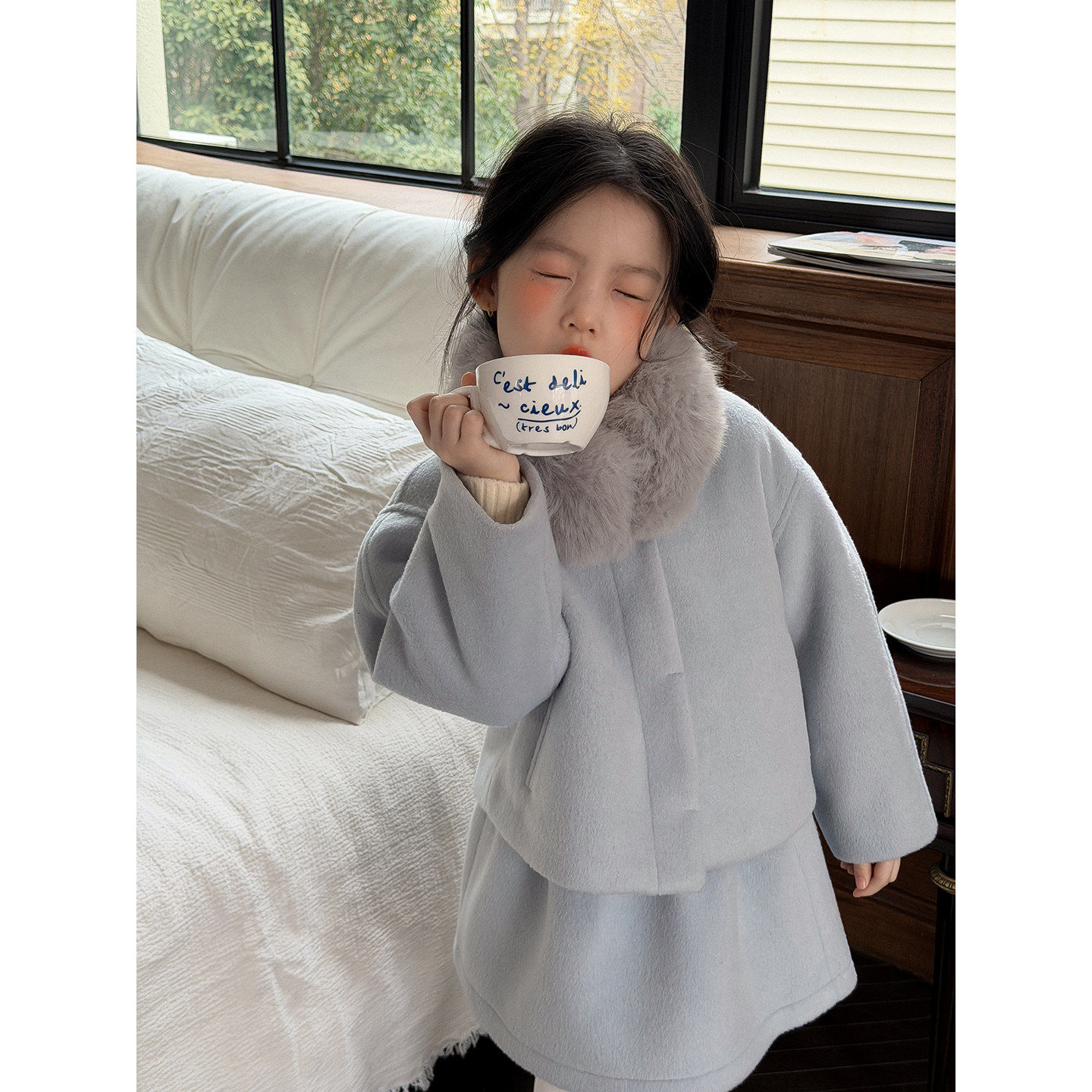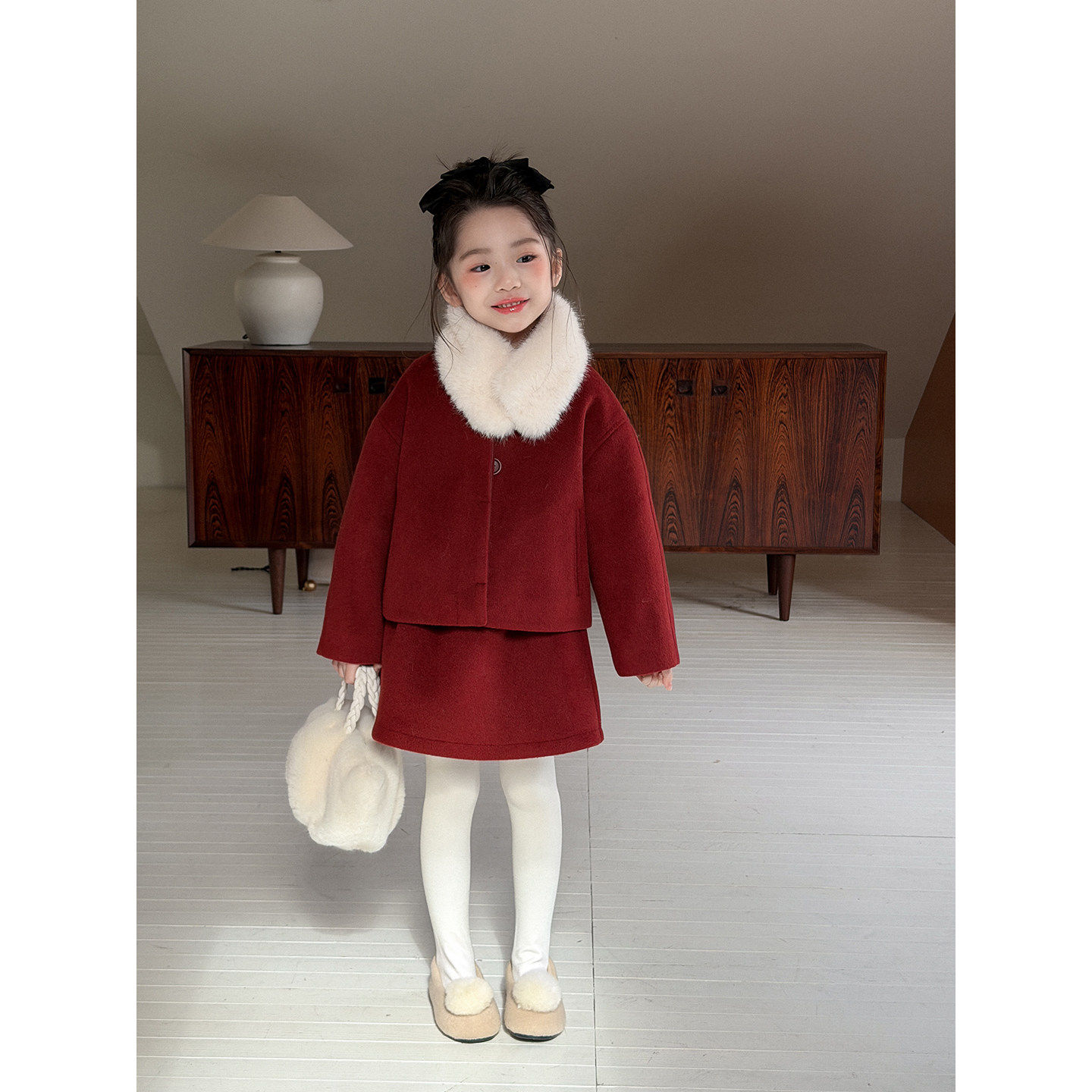 童装红色新年圣诞毛呢外套女童冬季半裙子过年外套装年服春节过年
