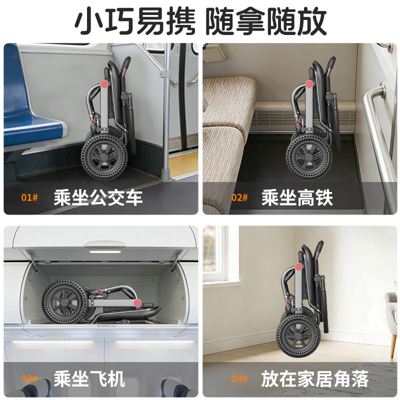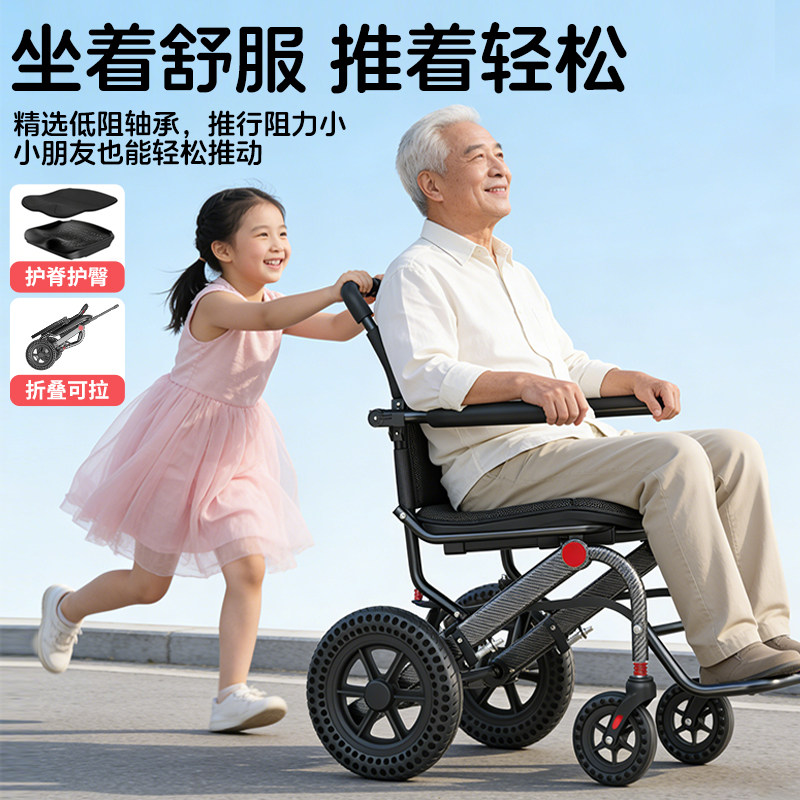 恒倍舒烤漆车架轮椅折叠轻便小型瘫痪老人老年专用旅行代步手推车