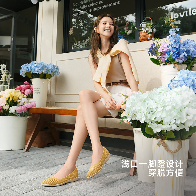 2026春夏Pansy盼喜新款女鞋通勤显脚小软底不累脚日系针织王妃鞋