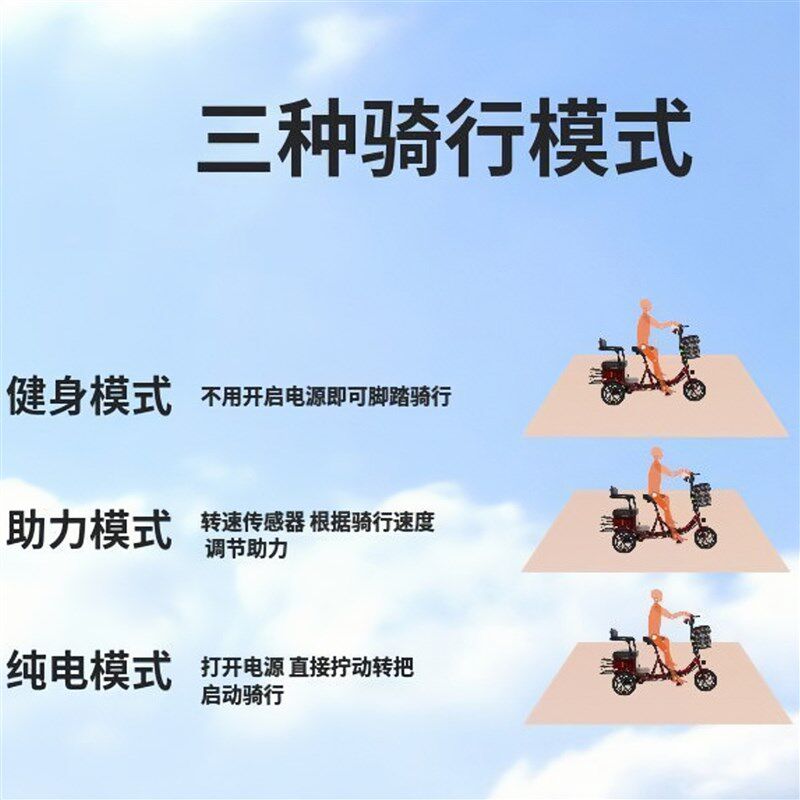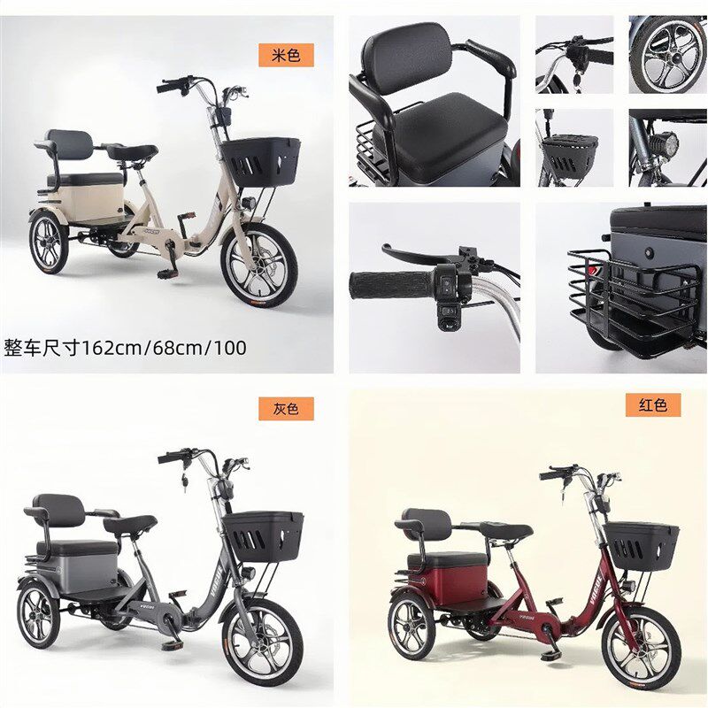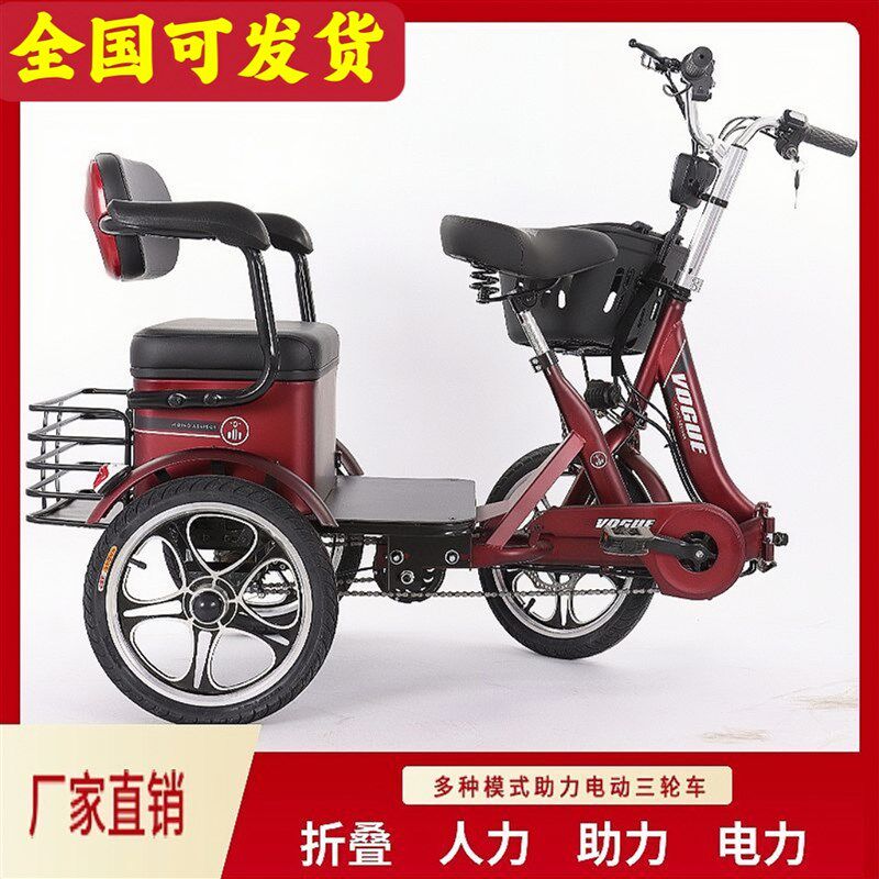 热销助力三轮车电动三轮车脚蹬成人滑板车家用小型双人接送孩子三