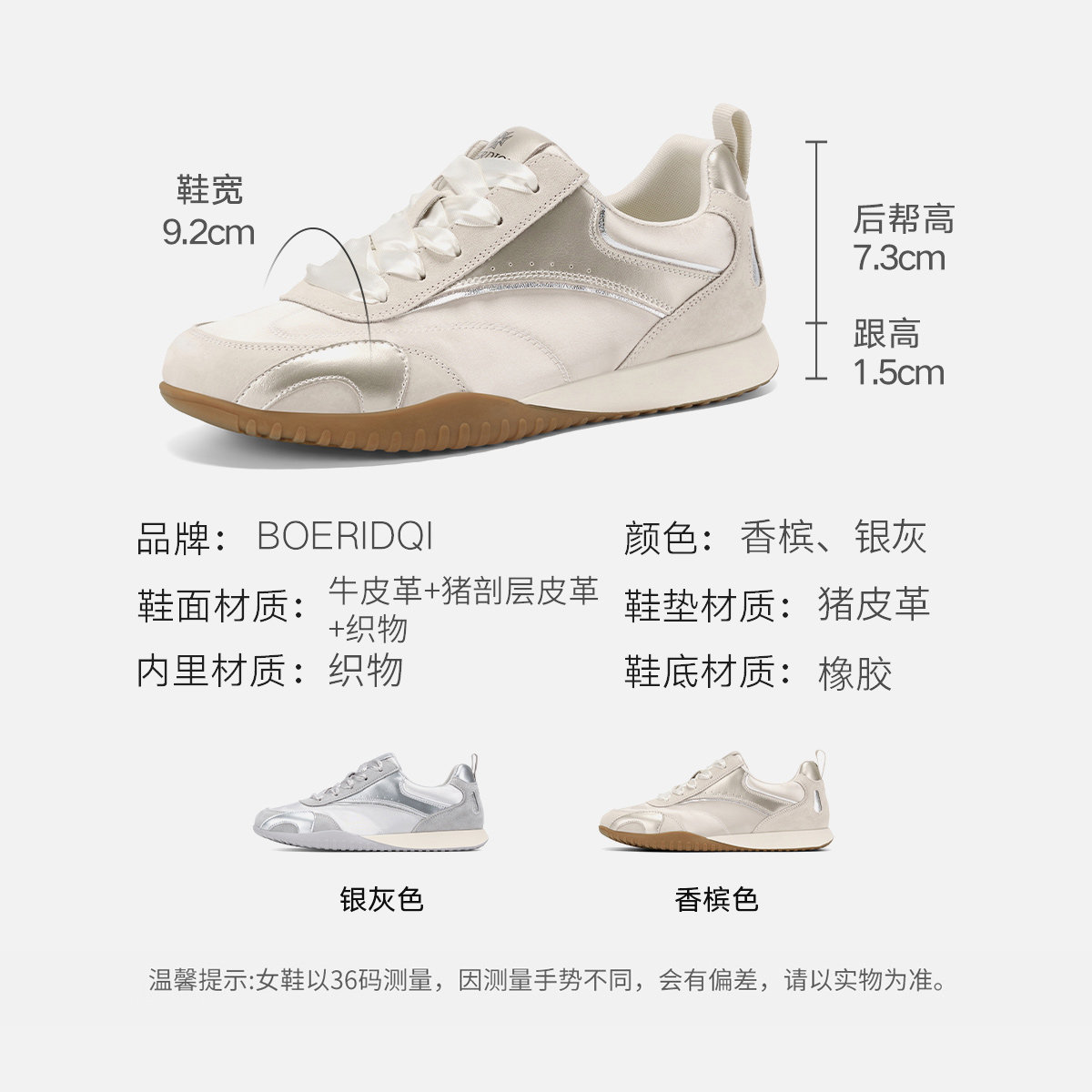 波尔谛奇春秋款轻便透气简约软底休闲运动板鞋百搭复古女士德训鞋