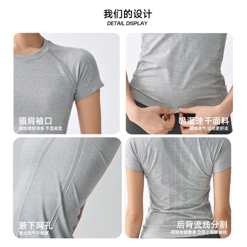 无缝一体织抗菌运动短袖女显瘦跑步训练普拉提健身上衣瑜伽服T恤