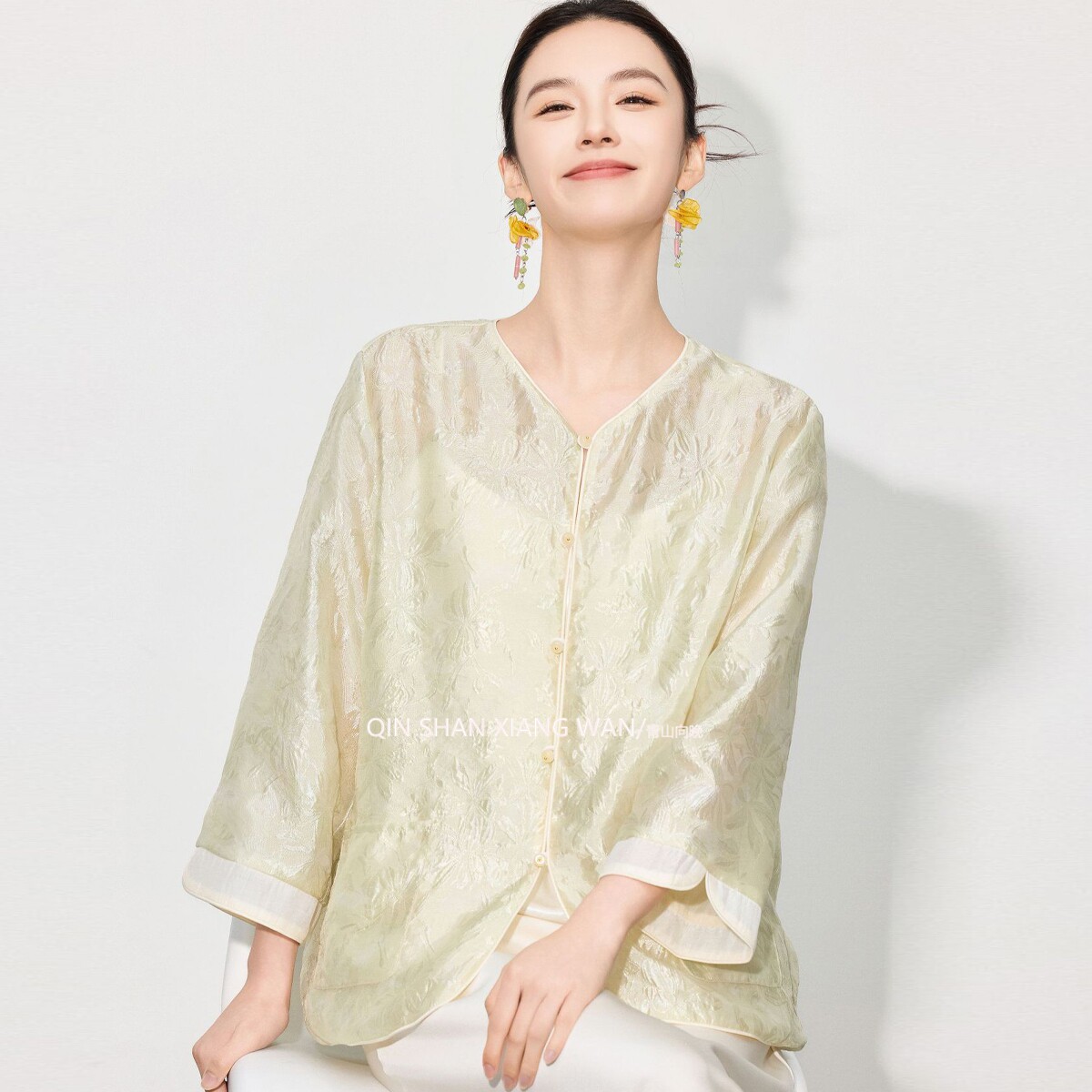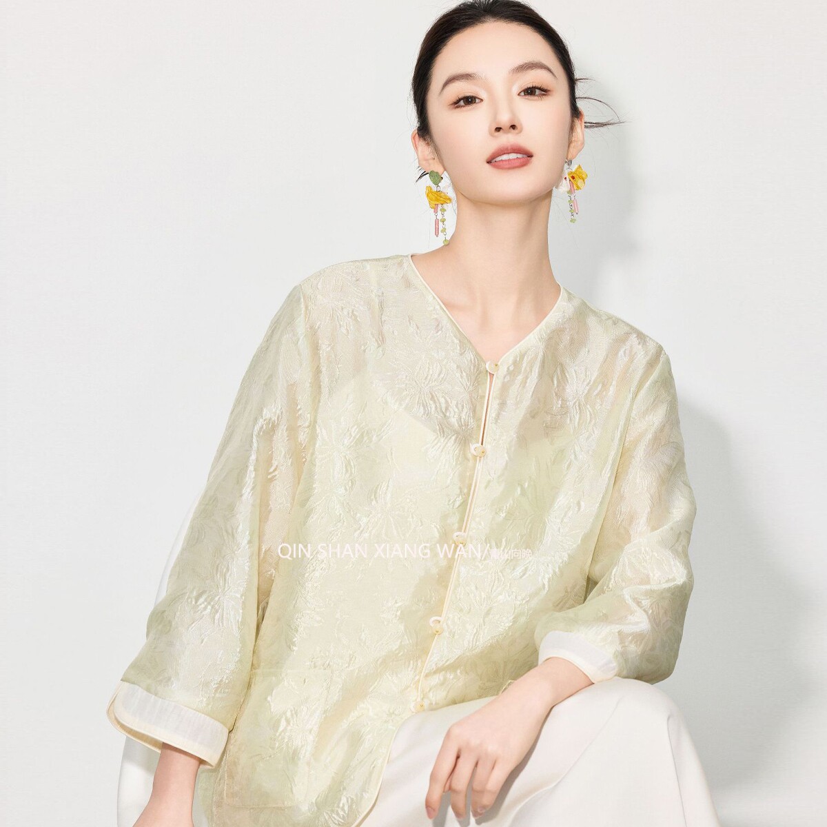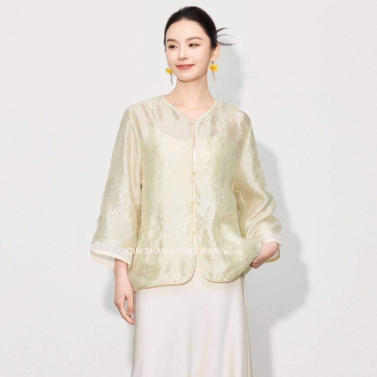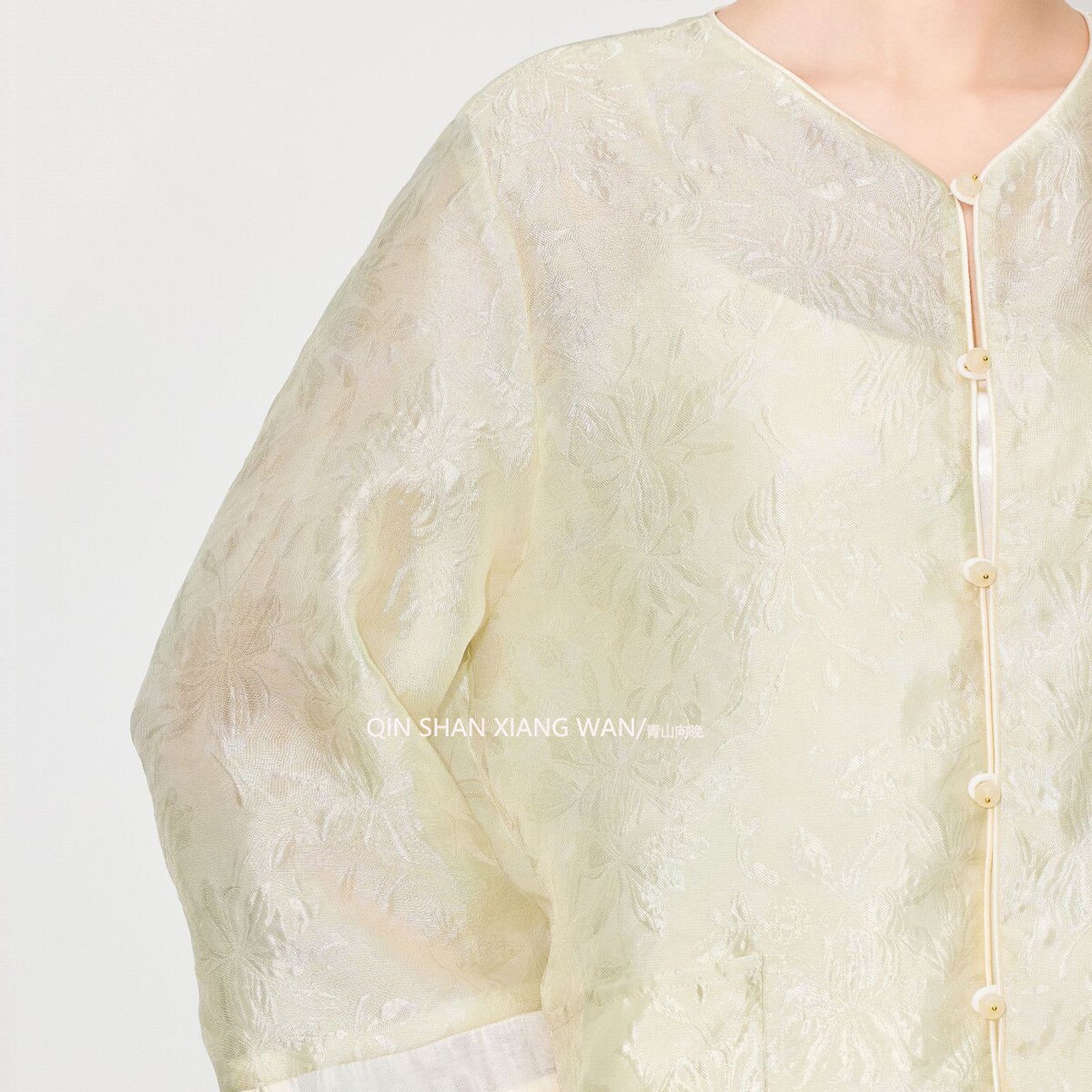 【杏羽】2026春装新款国风新中式提花薄款外套女上衣半裙套装显瘦