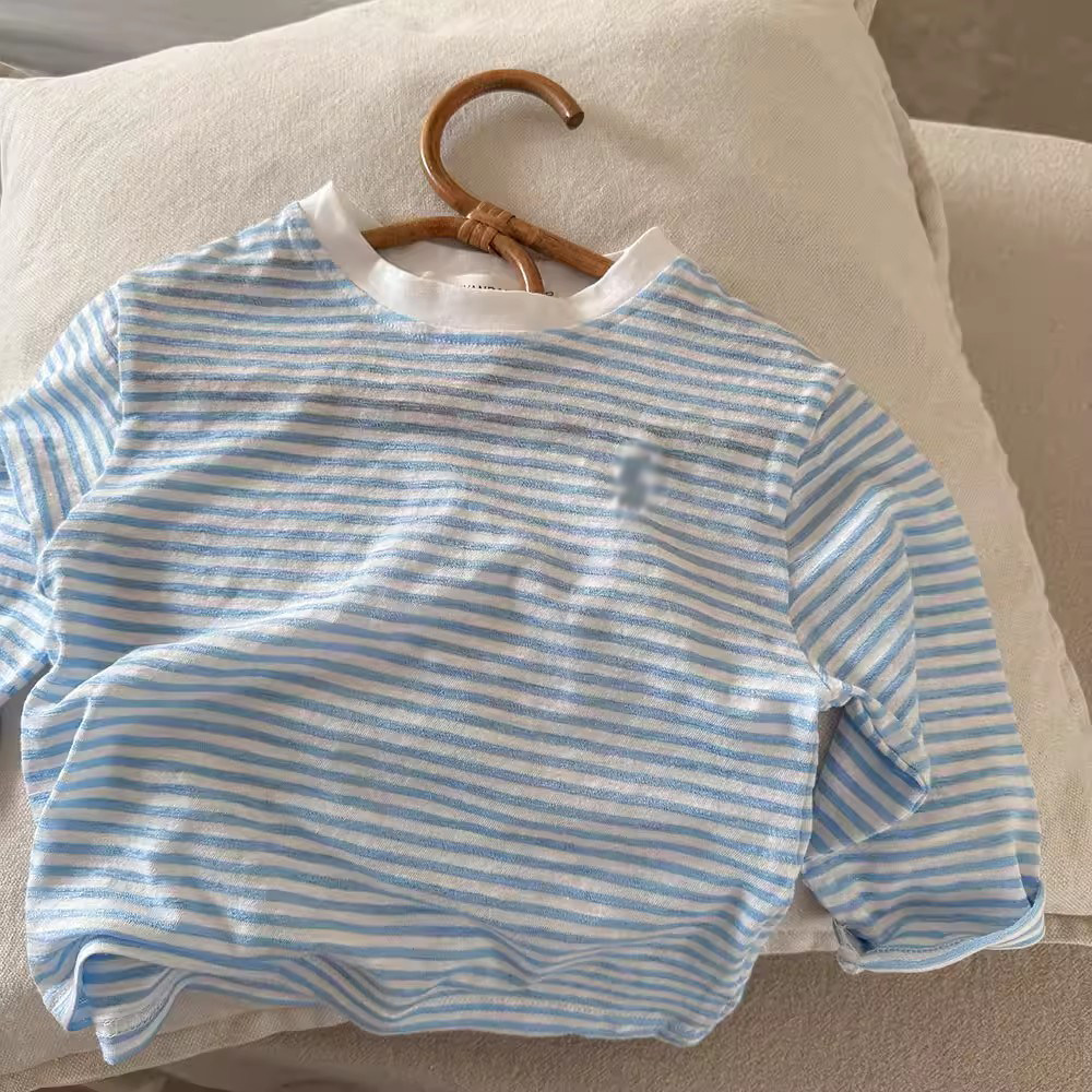 儿童长袖T恤轻薄款2026夏季款男童条纹上衣纯棉宝宝空调服女透气