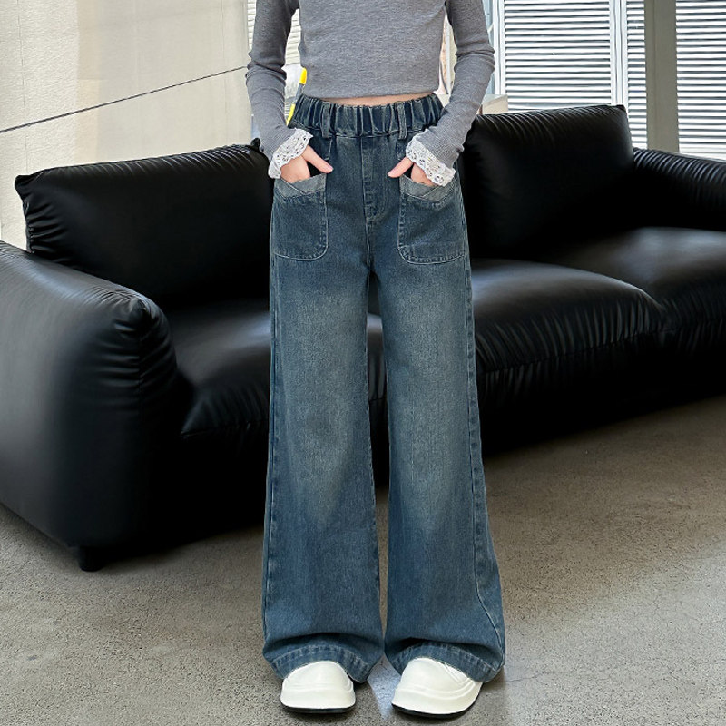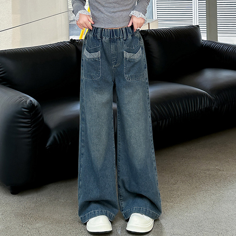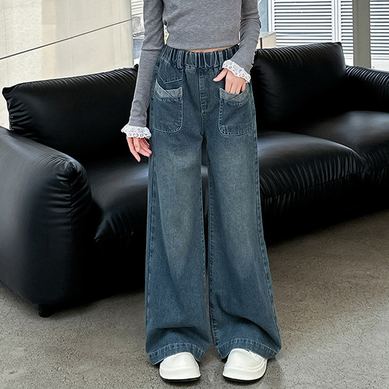 女童牛仔裤2026新款春秋季青少年儿童裤子女孩宽松阔腿裤大童春装