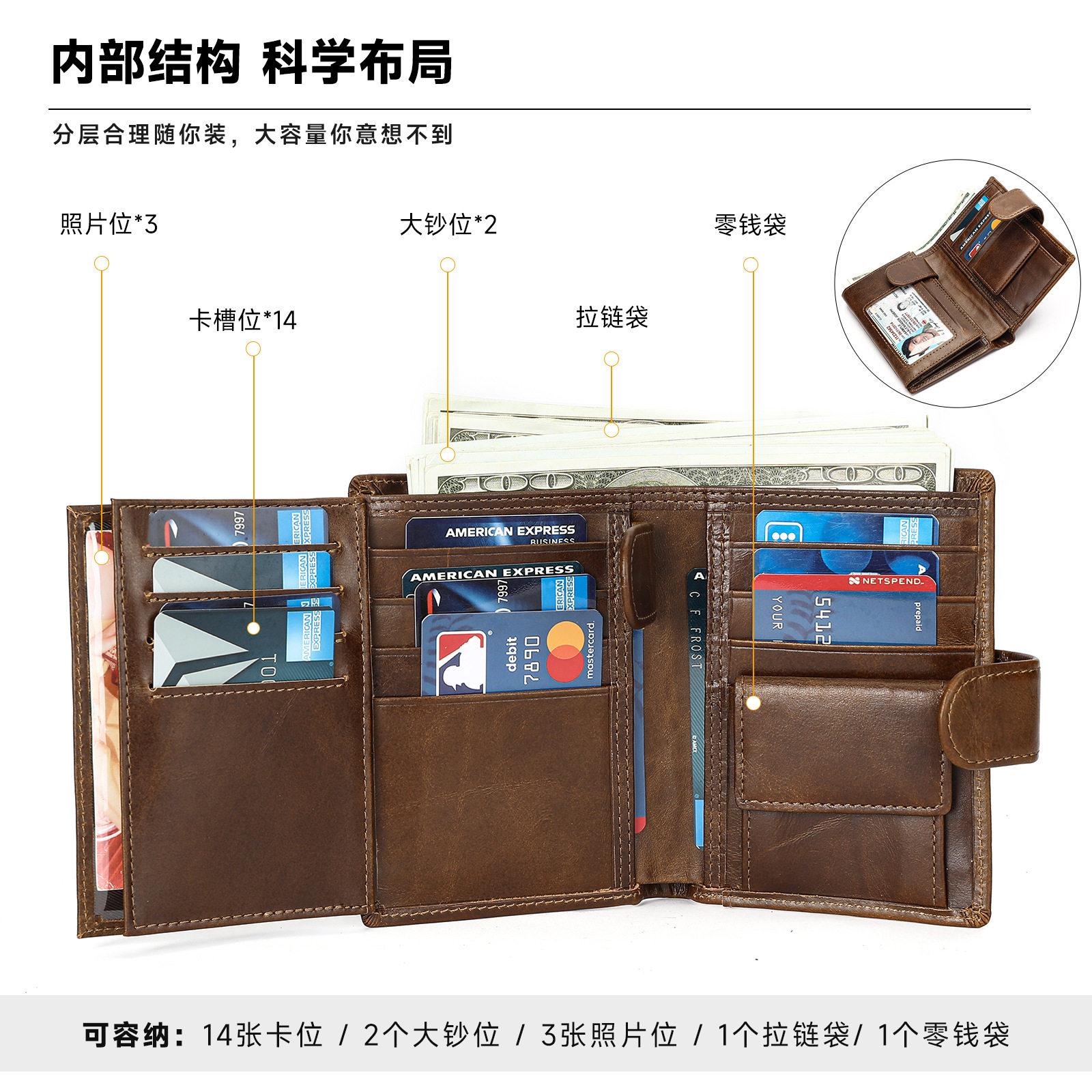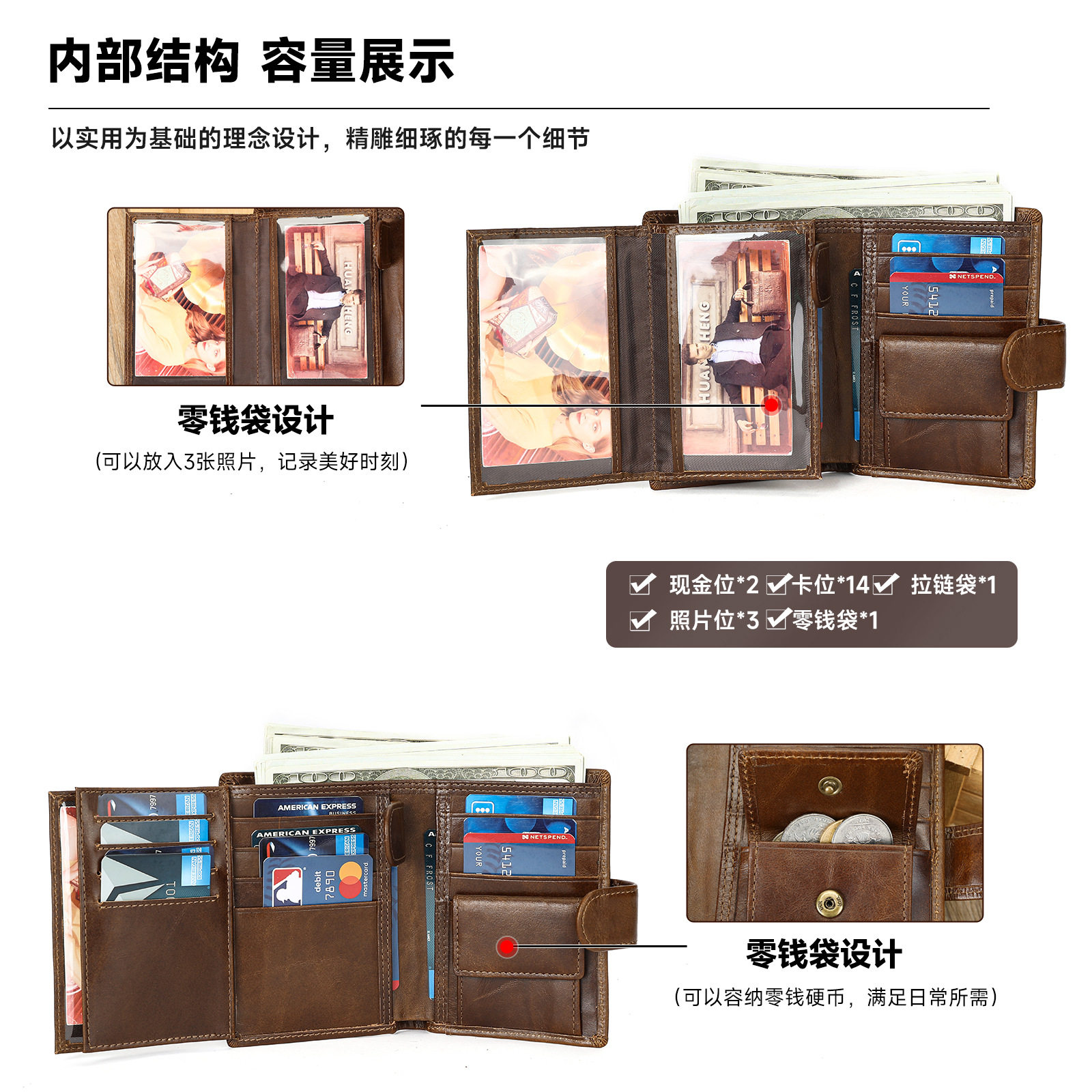 新款跨境真皮钱包男士头层牛皮皮质短款看多卡位卡包摆摊货源