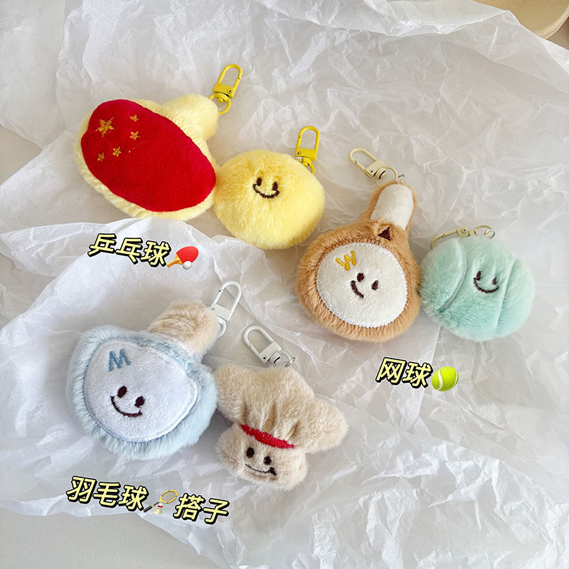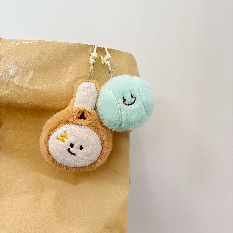 网红爆款卡通羽毛球网球毛绒公仔钥匙扣可爱闺蜜学生书包装饰挂件