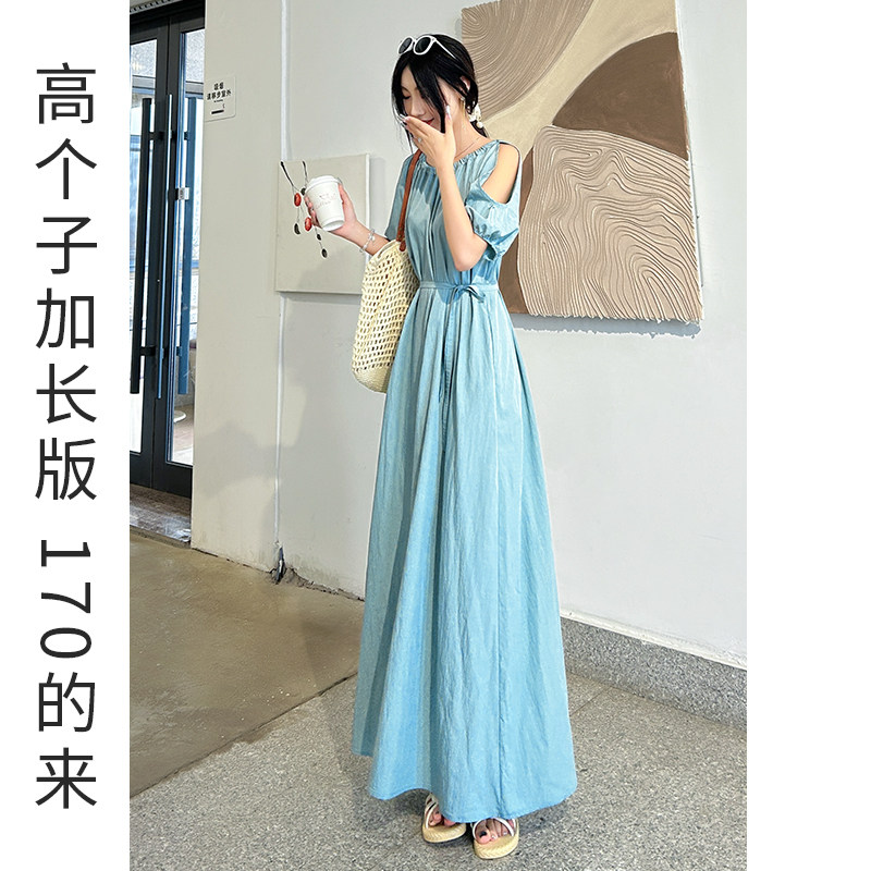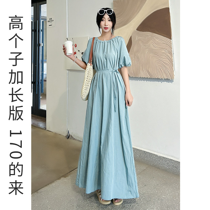高个子加长版小众不撞款连衣裙女夏季轻奢高级感微胖长裙梨型身材