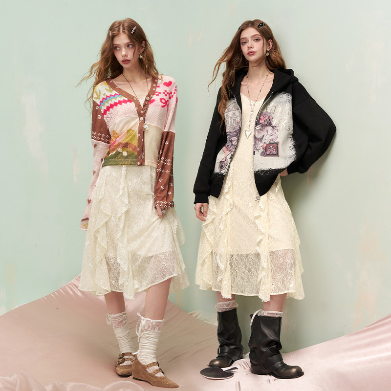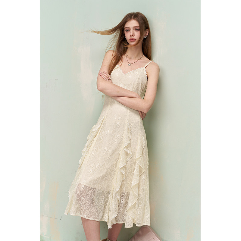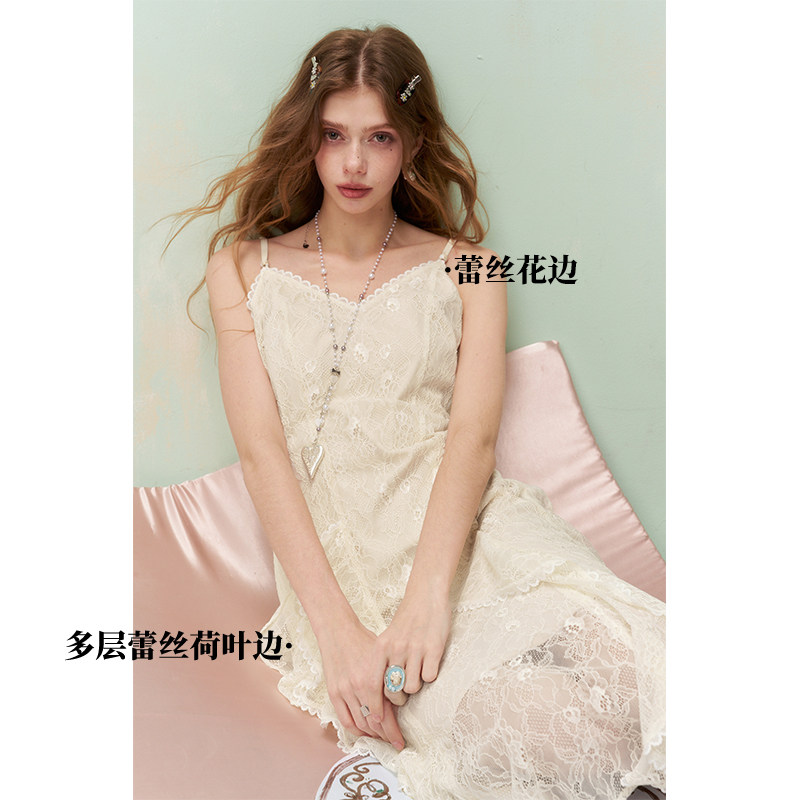 妖精的口袋白色重工蕾丝甜美连衣裙女26春夏新款高级感度假吊带裙