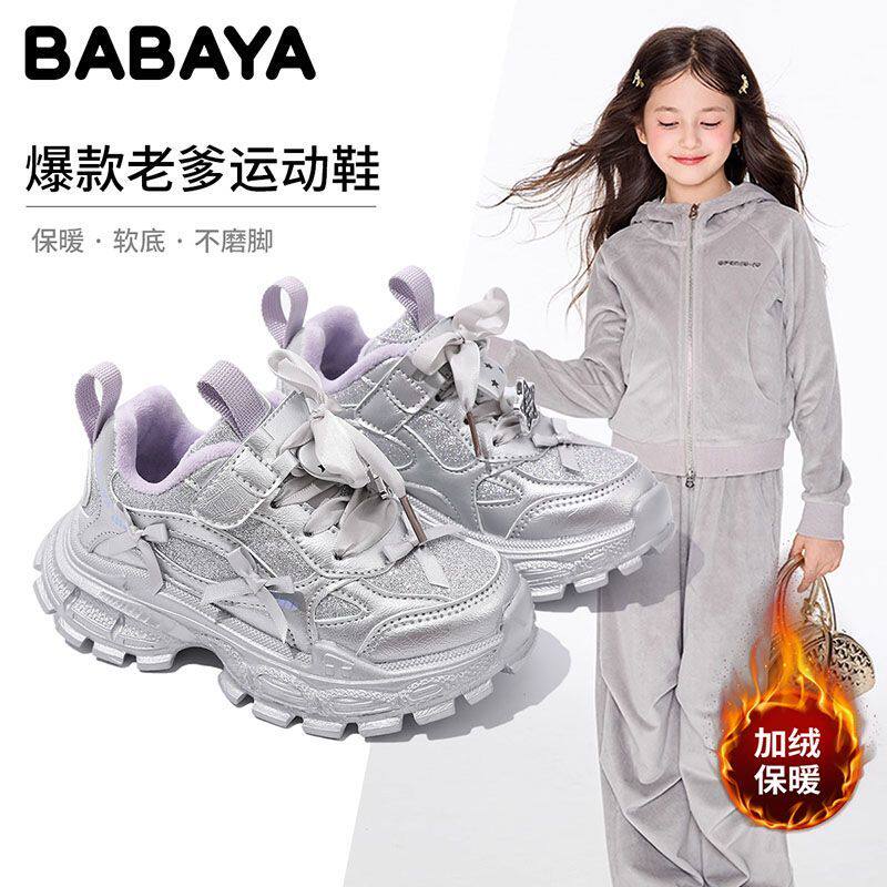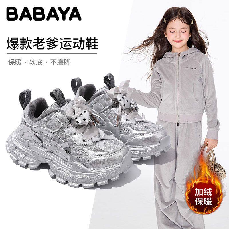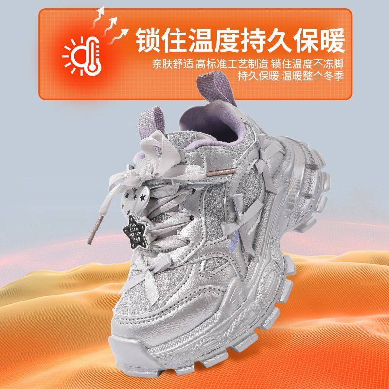 芭芭鸭女童鞋加绒2025冬季新款儿童运动鞋女孩保暖跑步二棉老爹鞋