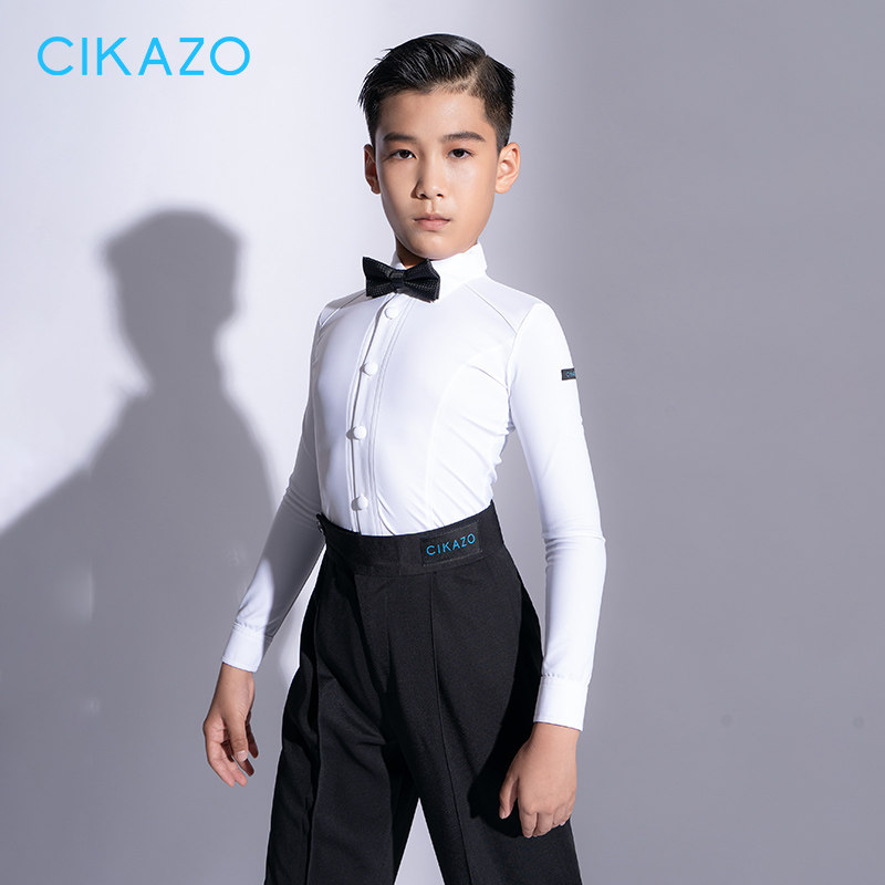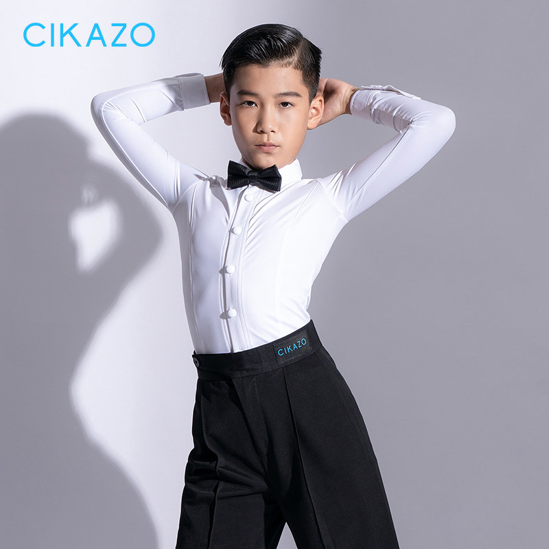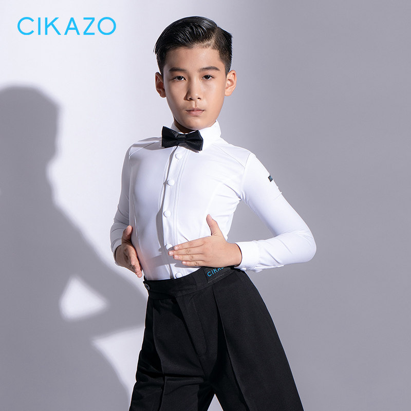 茜卡索 拉丁舞服男童专业比赛服规定服男生考级白色标准衬衫G7085
