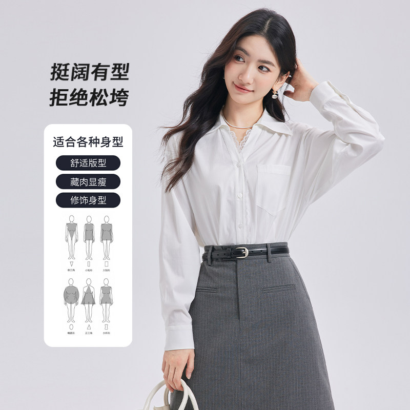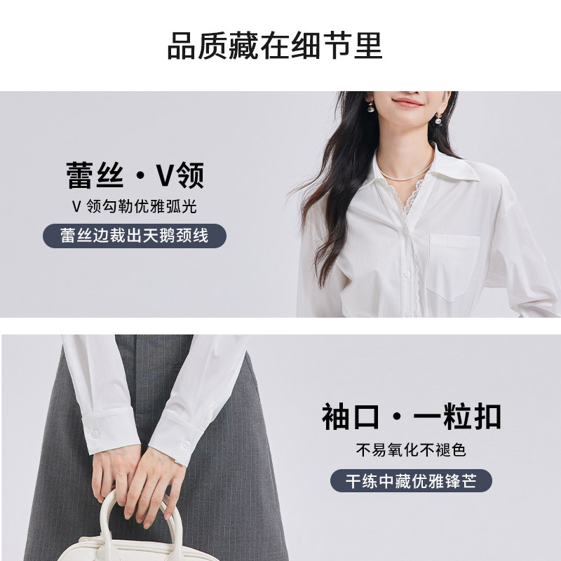 图曼朵白色衬衫女装2026新款早春高级感职业通勤长袖v领衬衣上衣