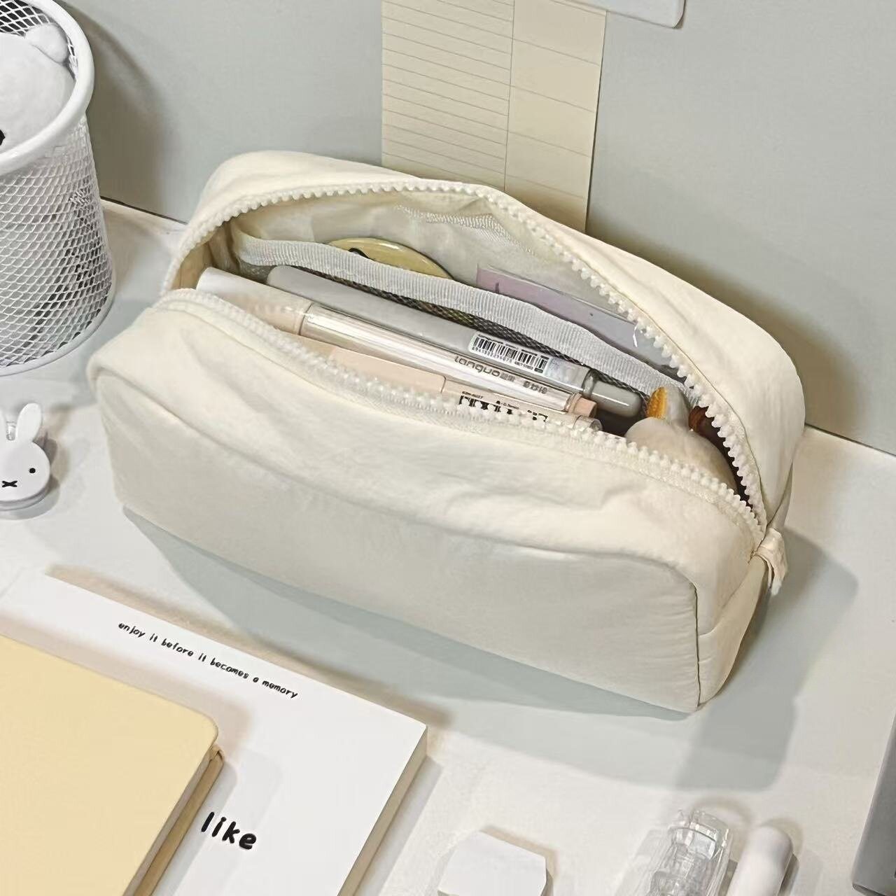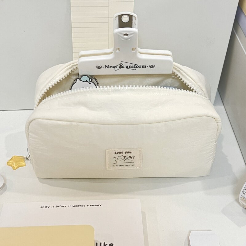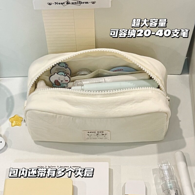 简约白色纯色系笔袋初中生高颜值奶油小方墩墩包文具收纳袋化妆包2026新款超火女生ins大容量多隔层文具袋