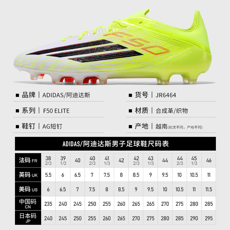 Adidas阿迪达斯F50 ELITE高端国际版AG短钉人草足球鞋男子JR6464