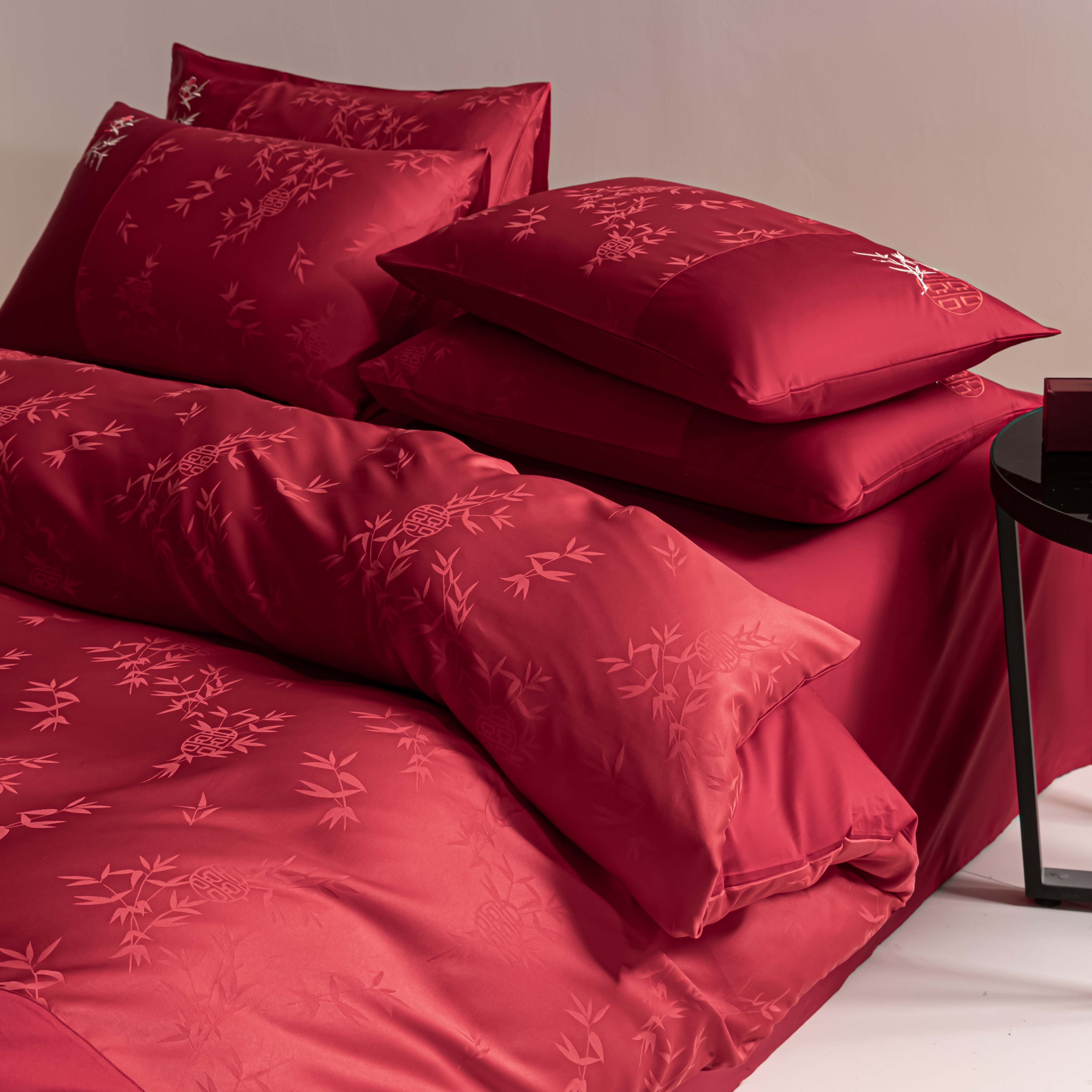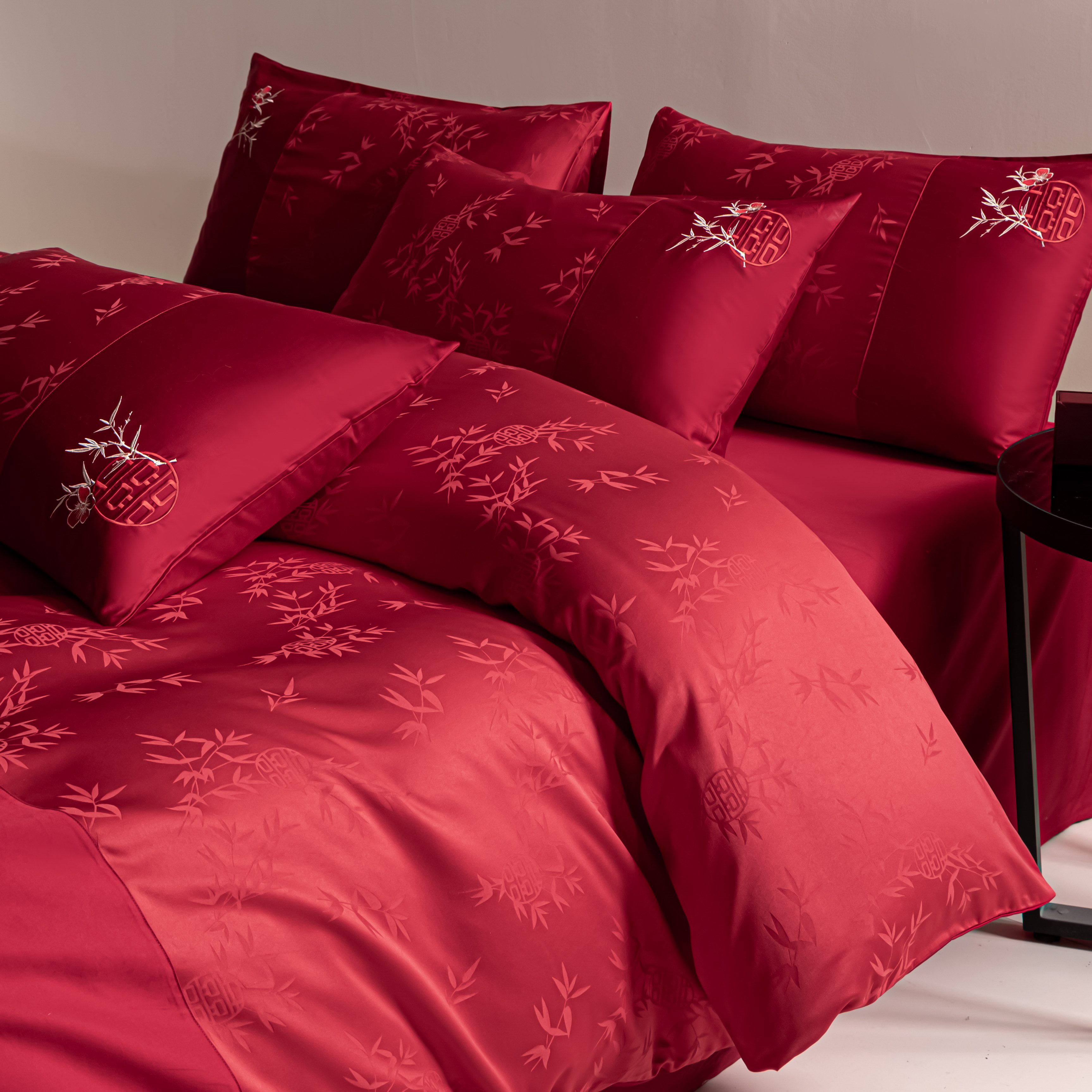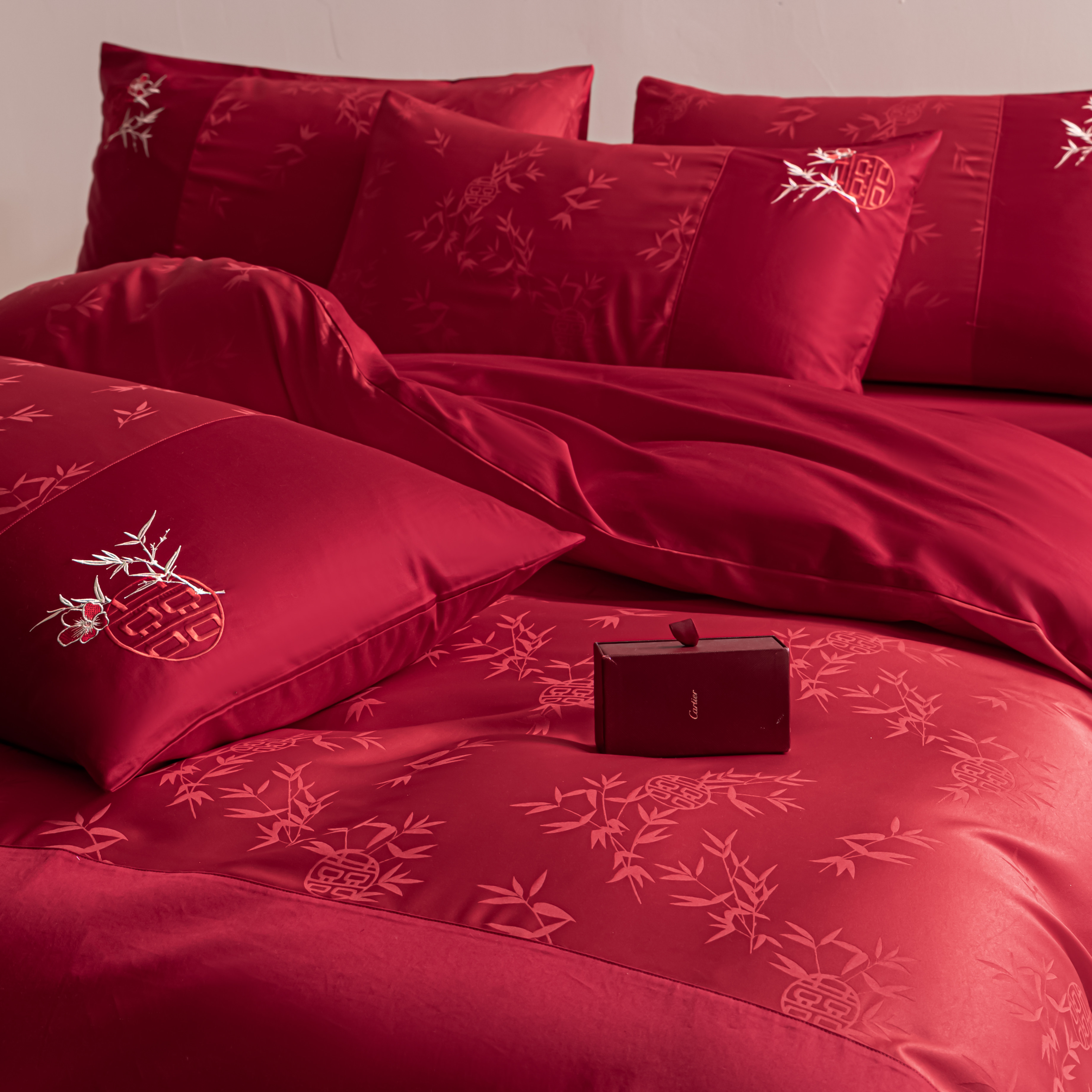 高级感全棉提花结婚四件套纯棉大红色婚庆床单被套婚床床上用品