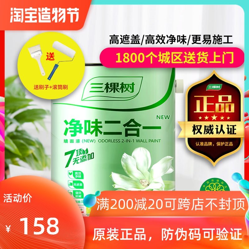 三棵树乳胶漆净味二合一家用内墙漆水性环保自刷室内墙面油漆涂料