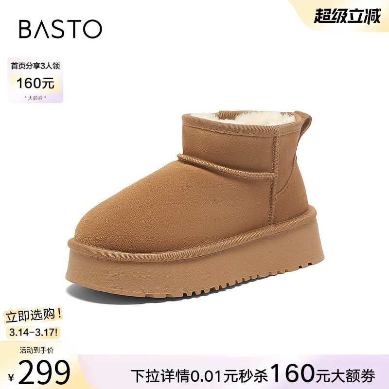 百思图冬新款厚底雪地靴女鞋加厚毛毛勃肯鞋加绒保暖棉鞋LD520DD3