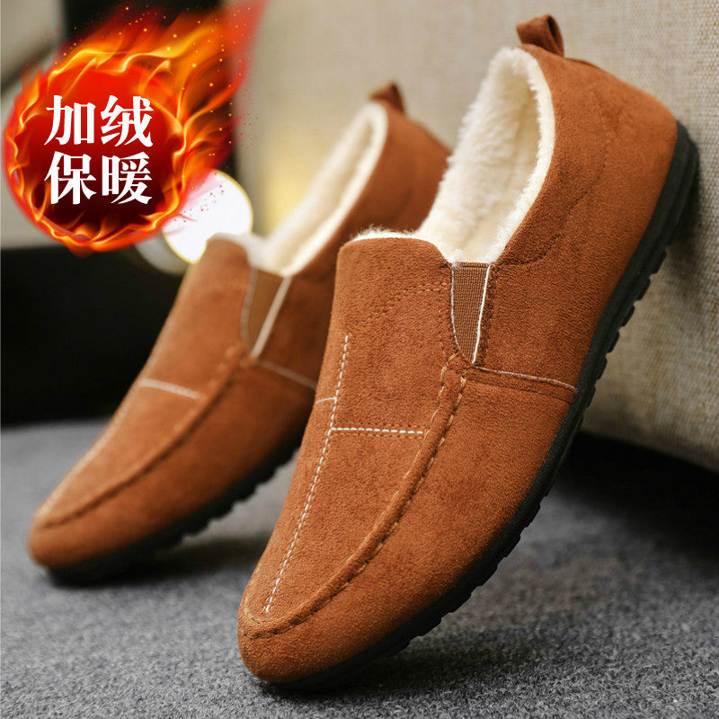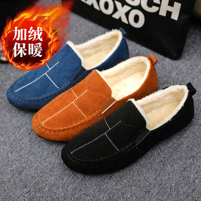 冬季男鞋加绒保暖老北京布鞋男棉鞋男士休闲懒人一脚蹬豆豆鞋加棉