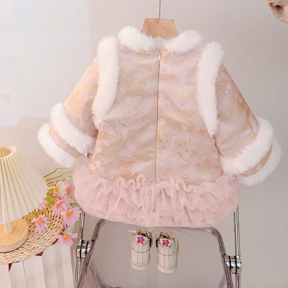 女童新中式国风连衣裙冬装新年拜年服宝宝周岁礼服公主裙过年衣服